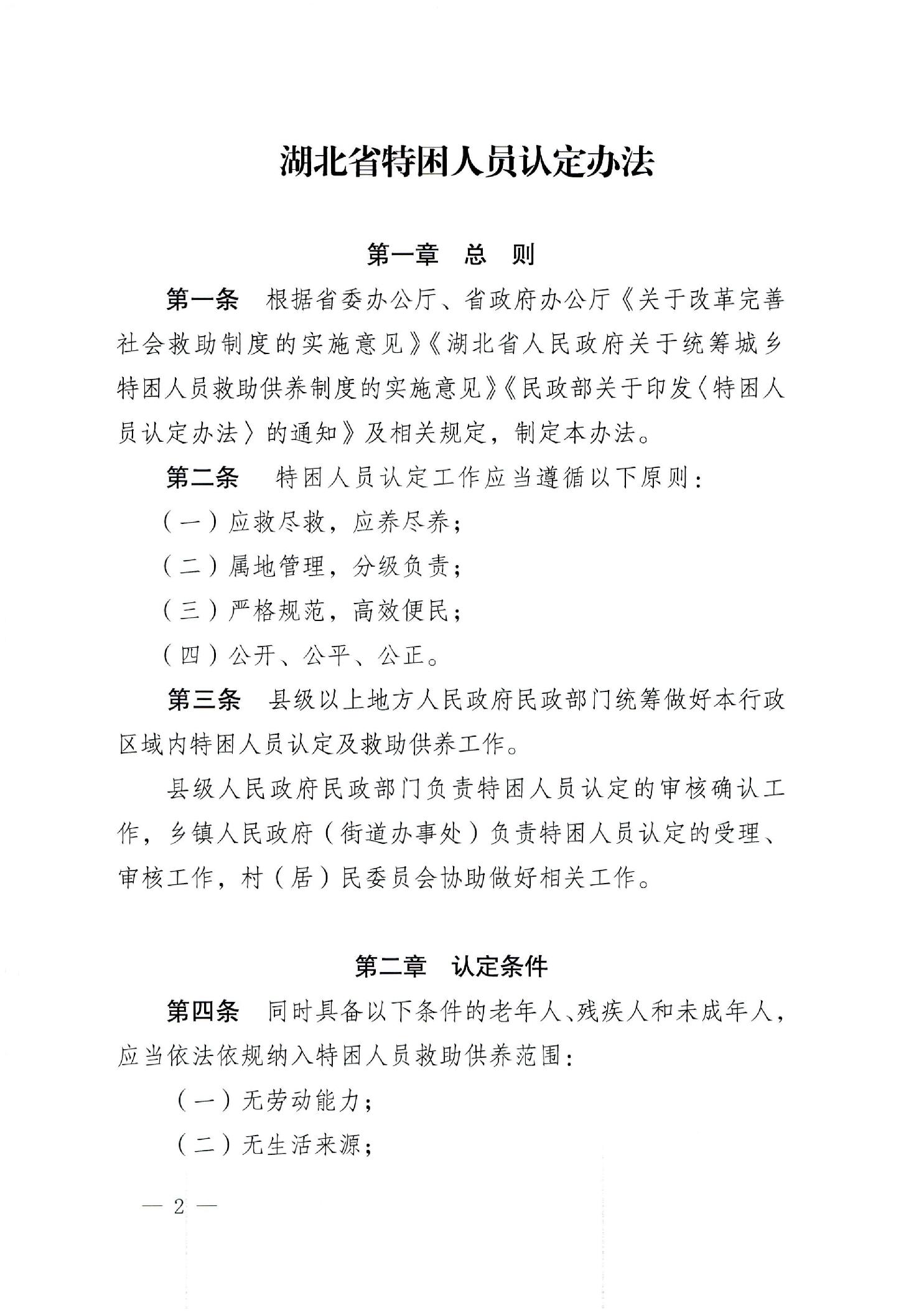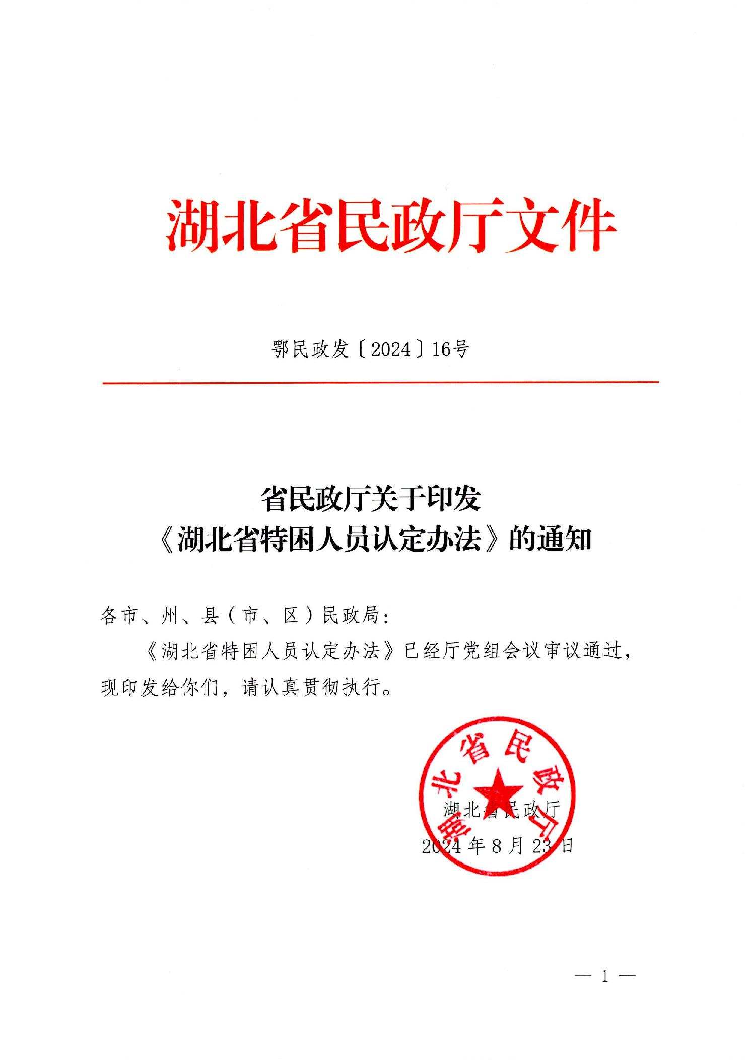 省民政厅关于印发《湖北省特困人员认定办法》的通知