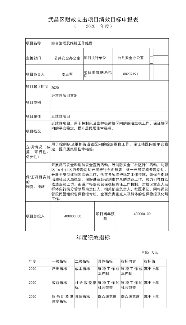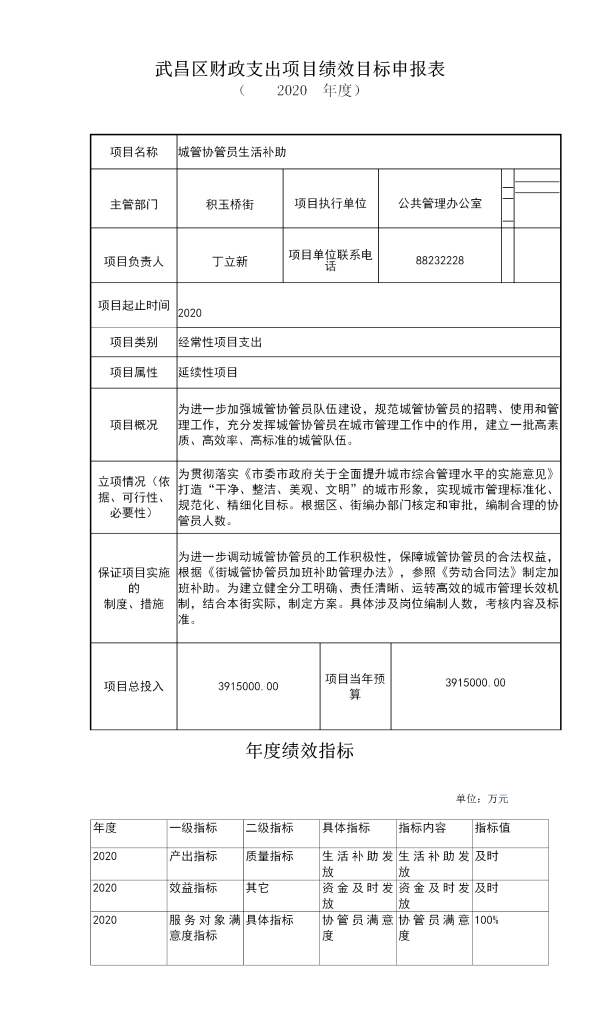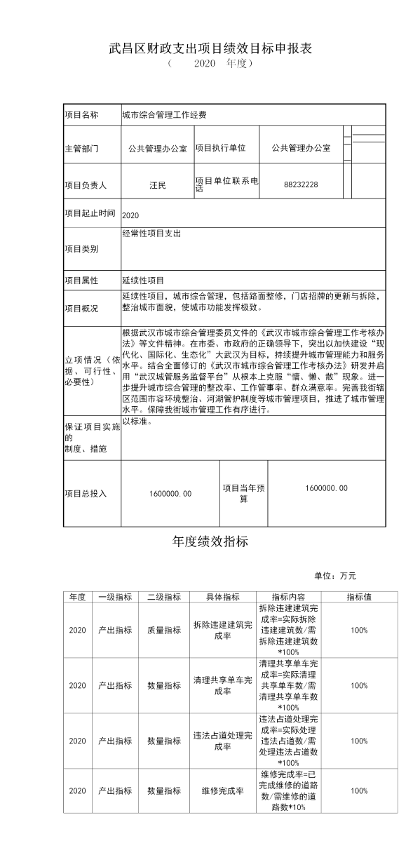 武昌区人民政府积玉桥街办事处2020年部门预算公开说明