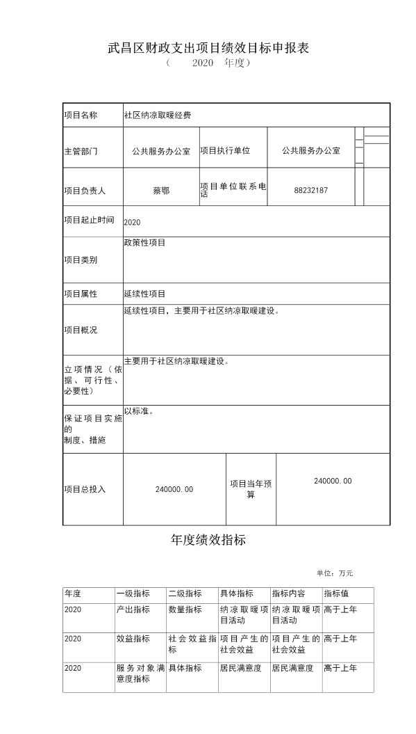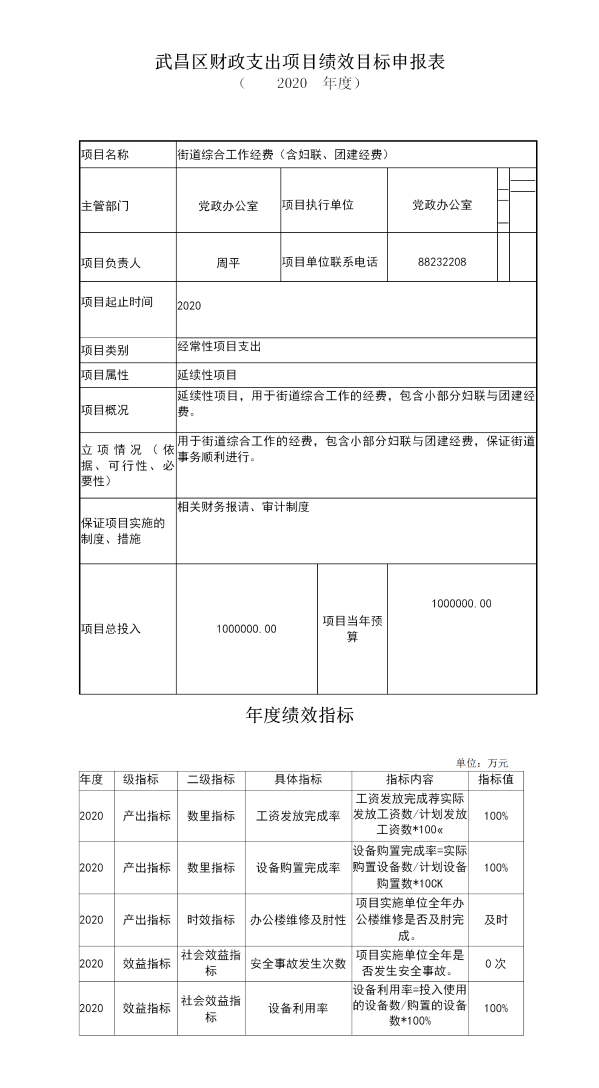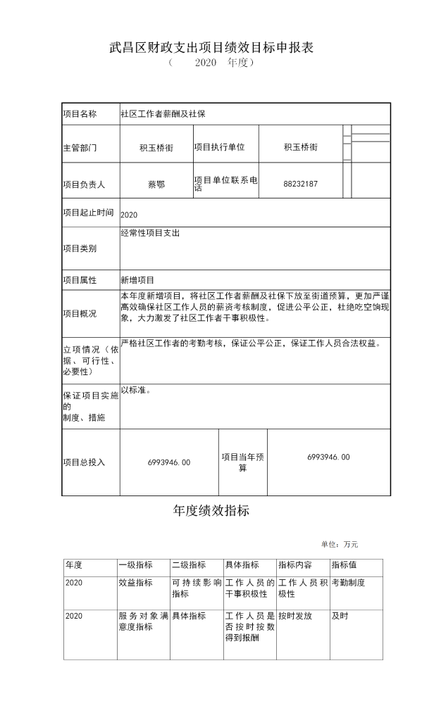 第二部分 武昌区人民政府积玉桥街办事处2020年部门预算表