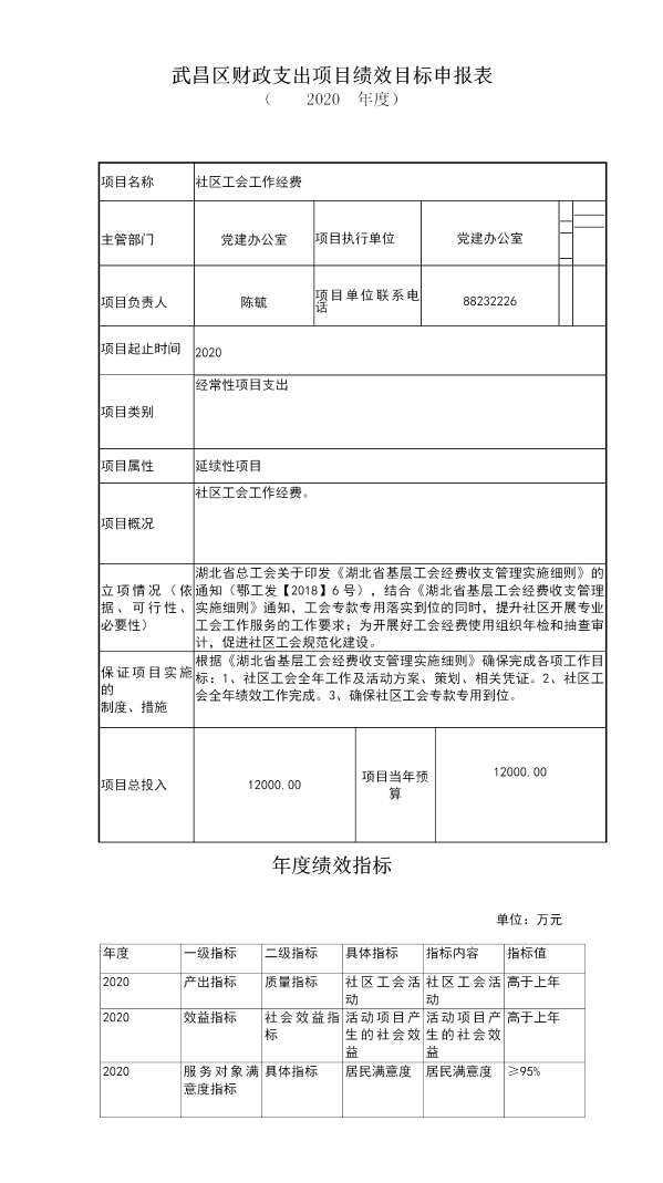 12.街道综合工作经费(含妇联、团建经费)支出绩效目标表