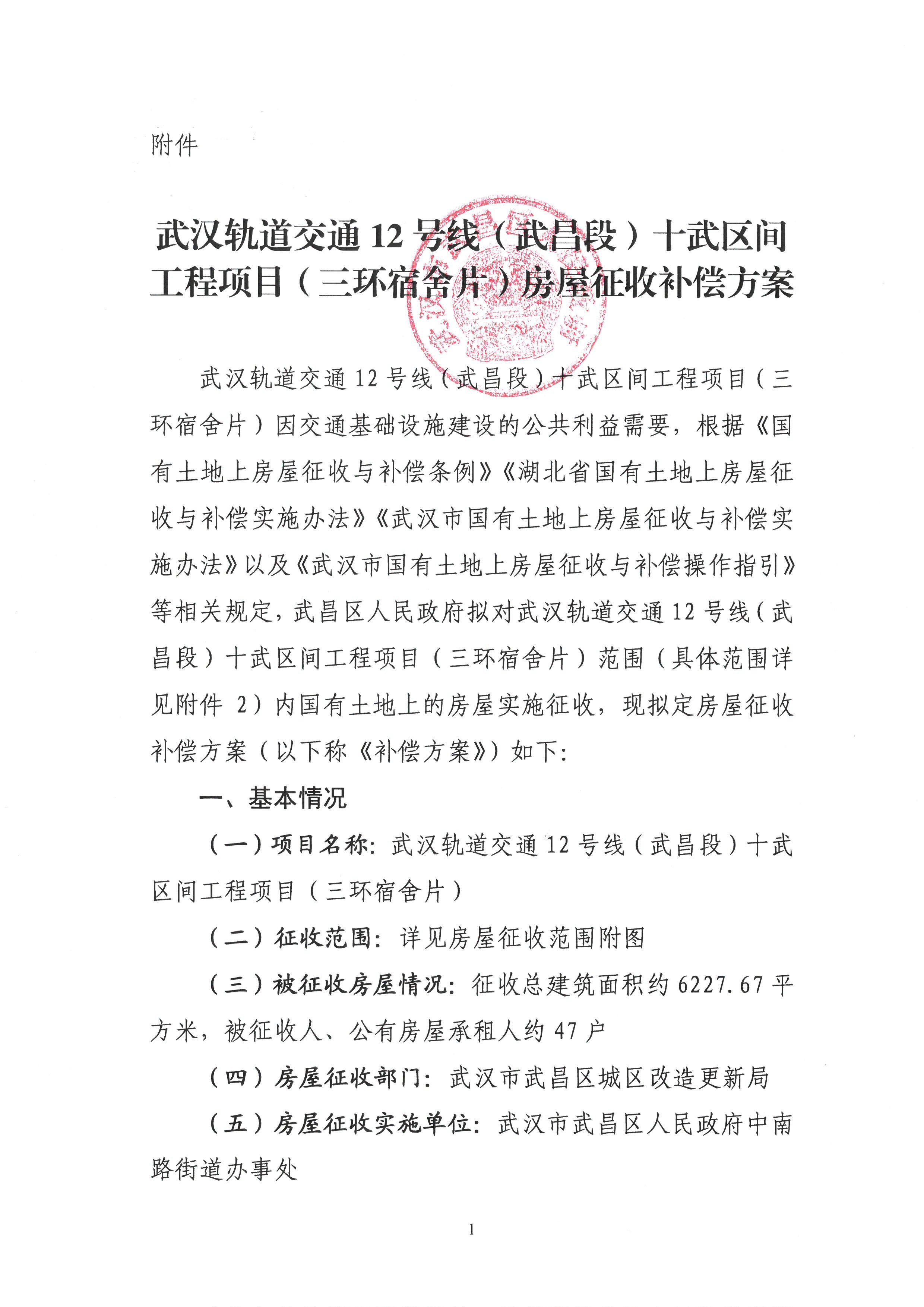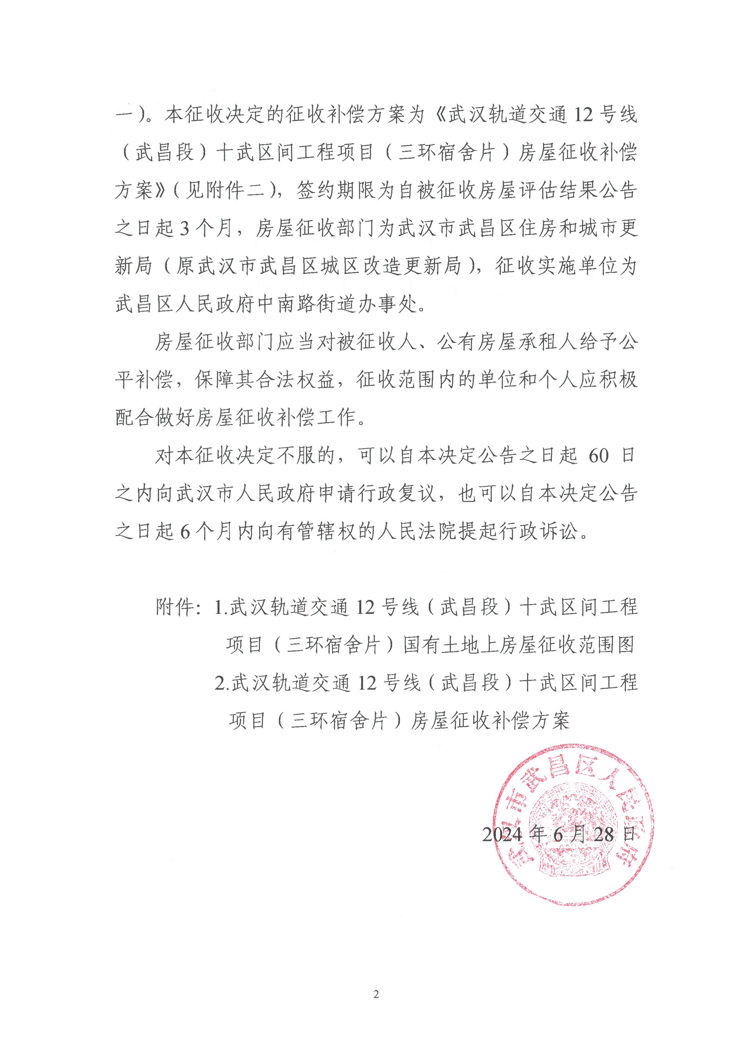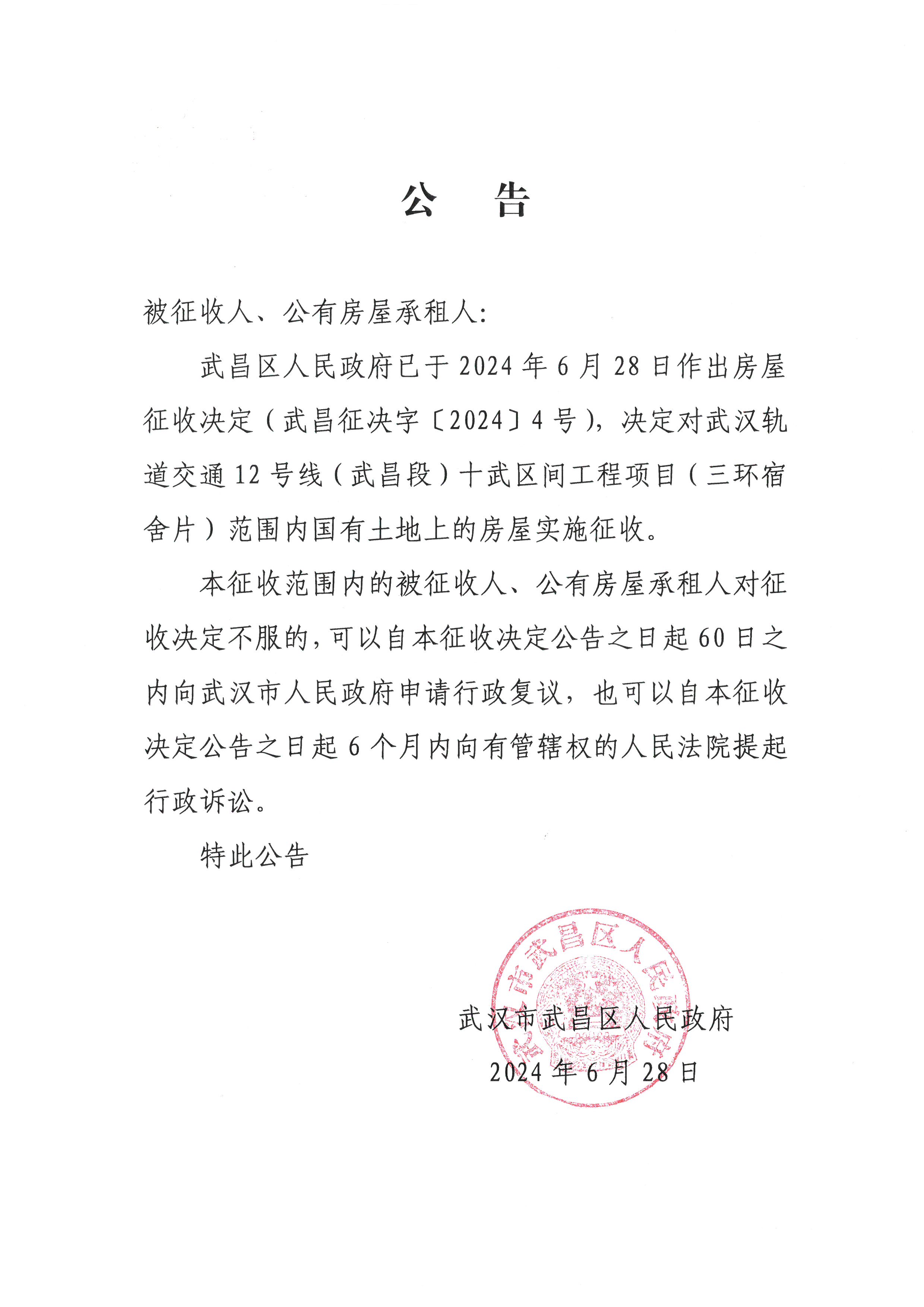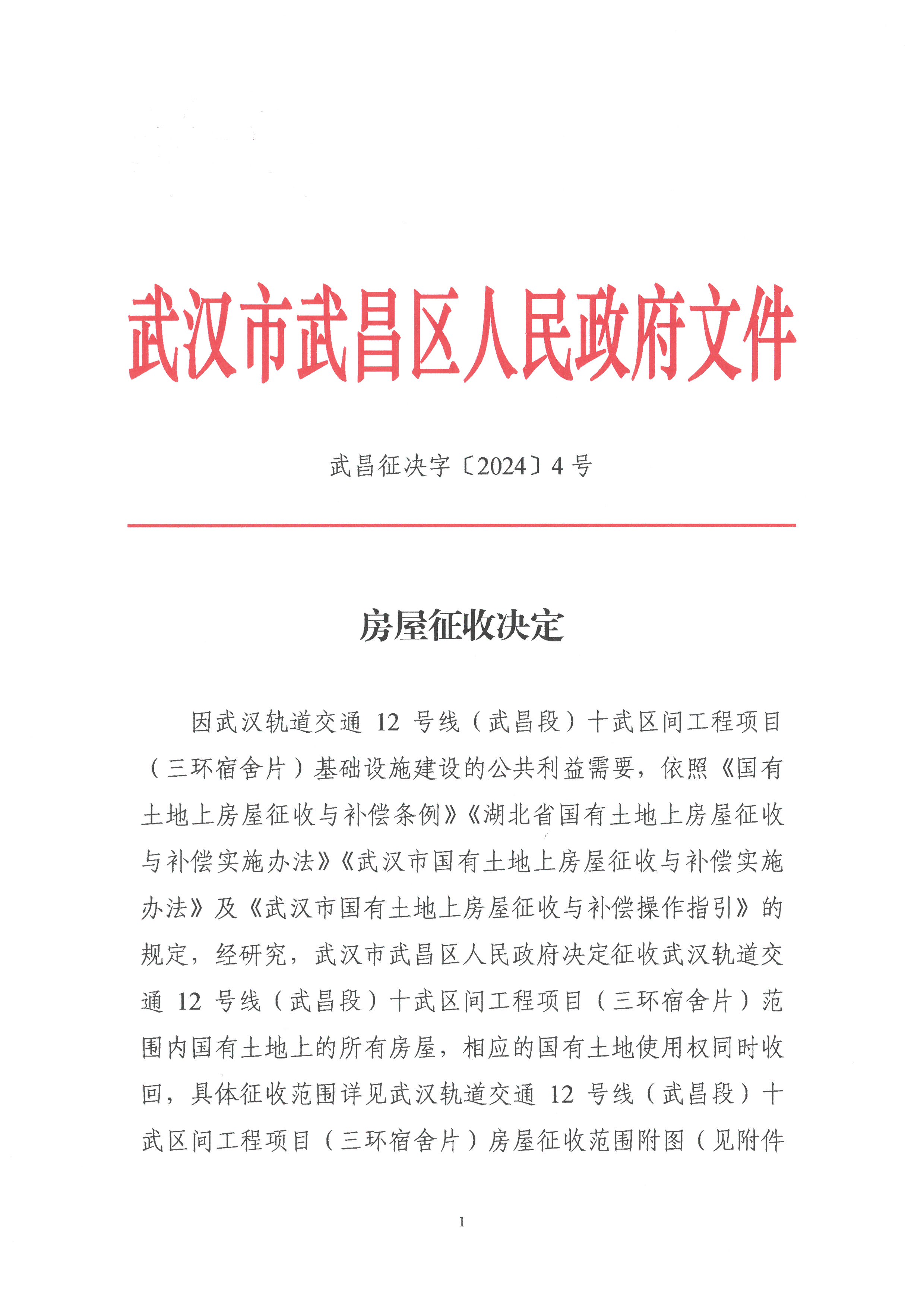 房屋征收决定[武汉轨道交通12号线(武昌段)十武区间工程项目(三环宿舍片)]