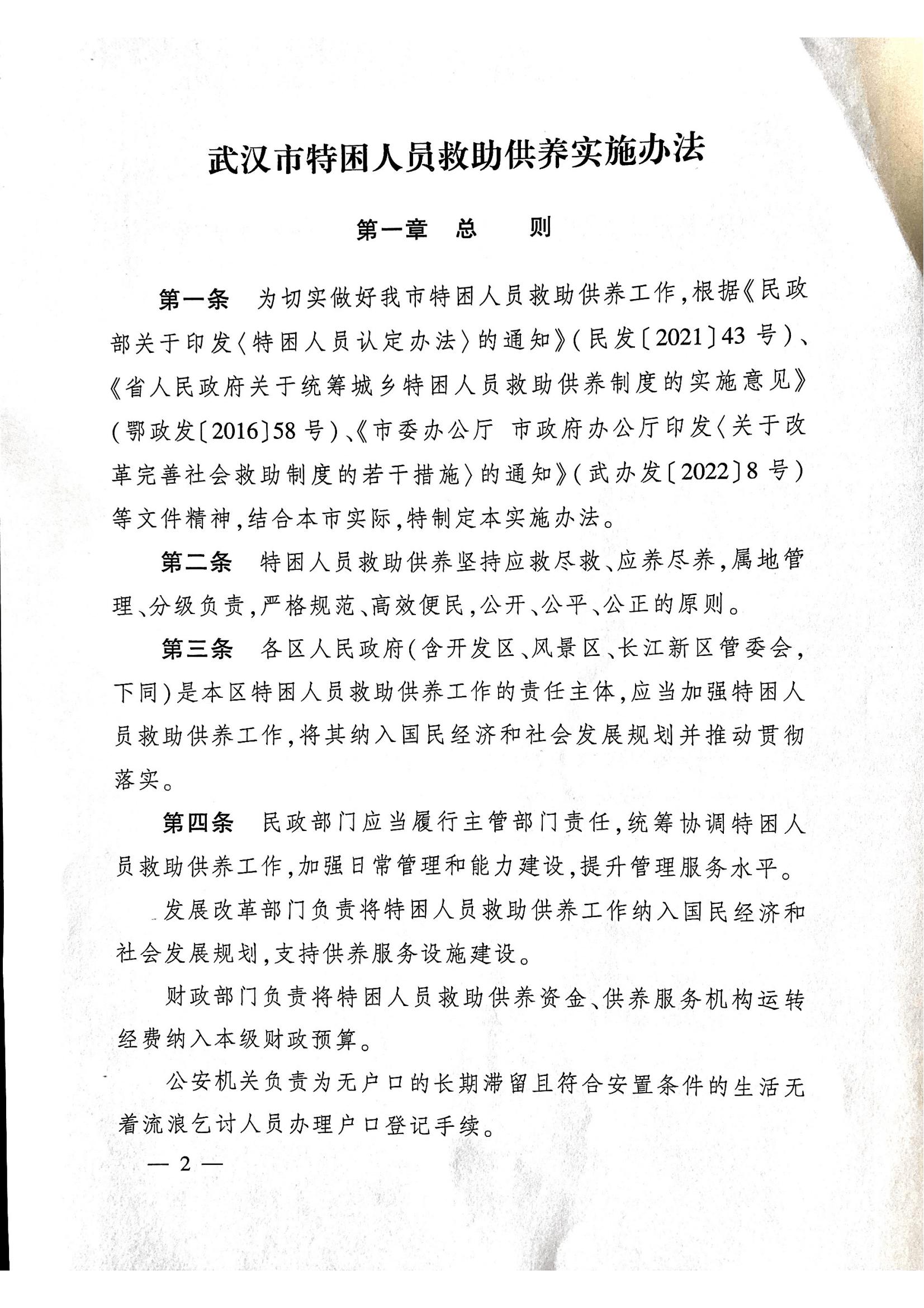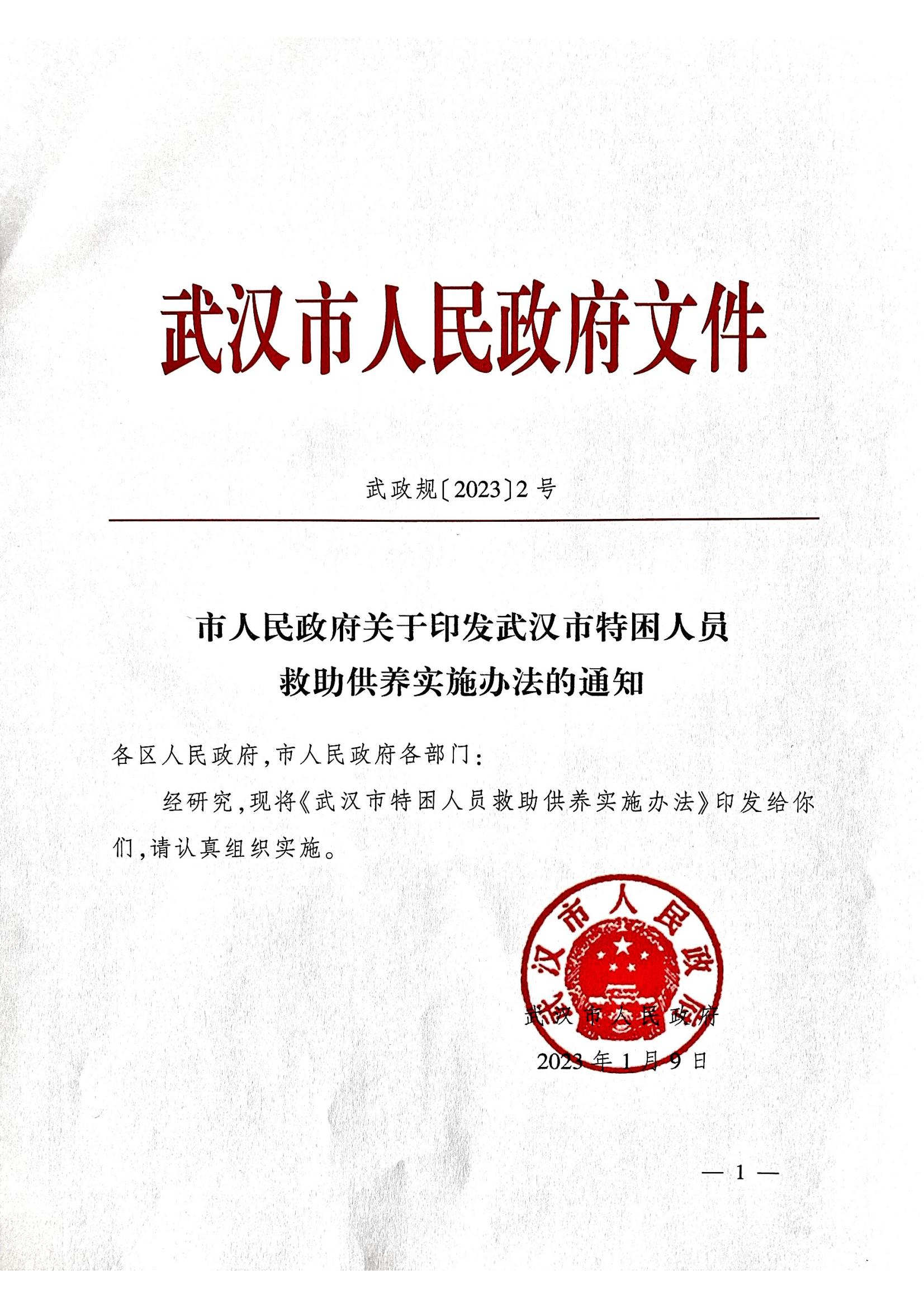 市人民政府关于印发武汉市特困人员救助供养实施办法的通知