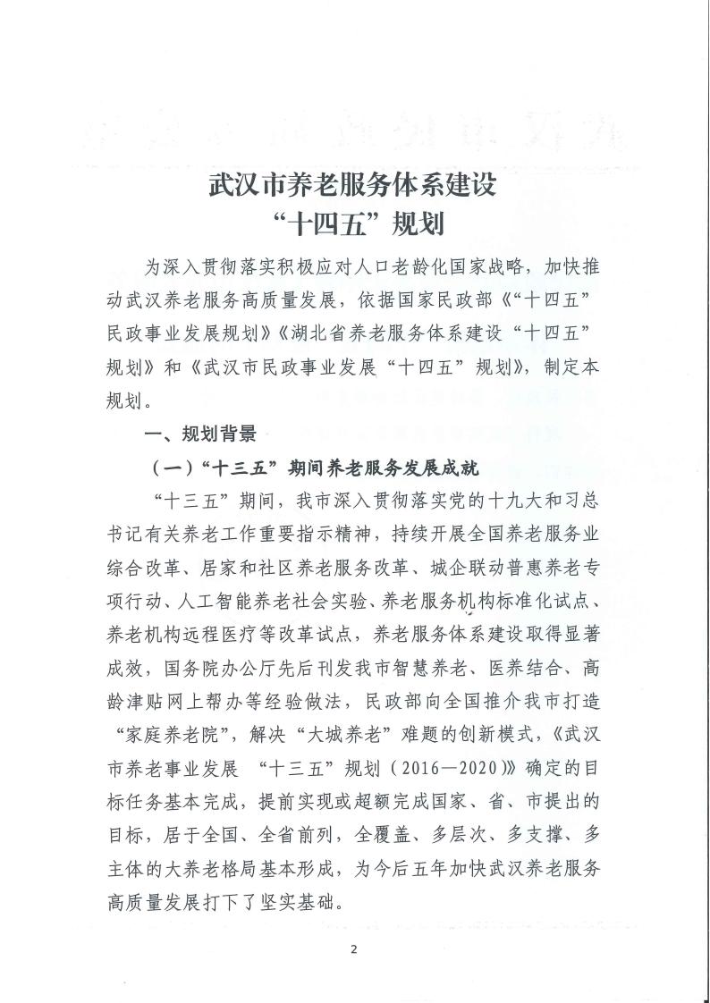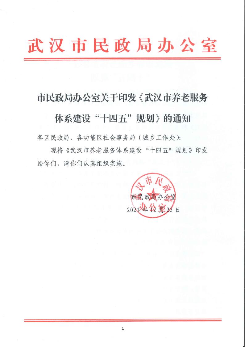 市民政局办公室关于印发《武汉市养老服务体系建设“十四五”规划》的通知