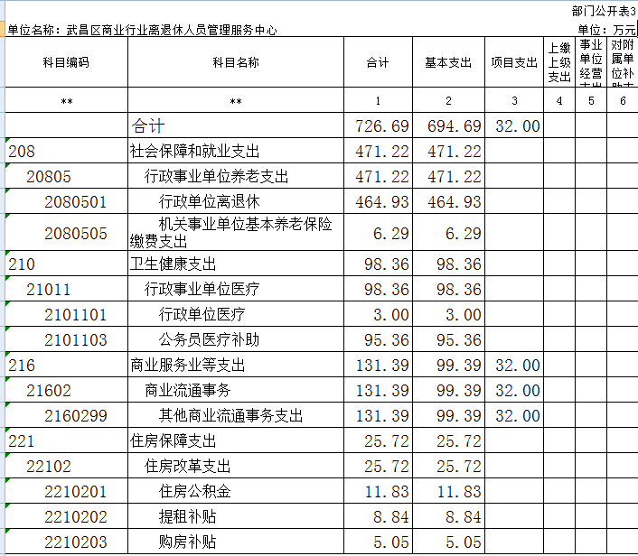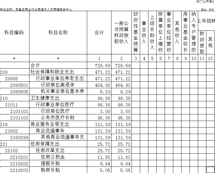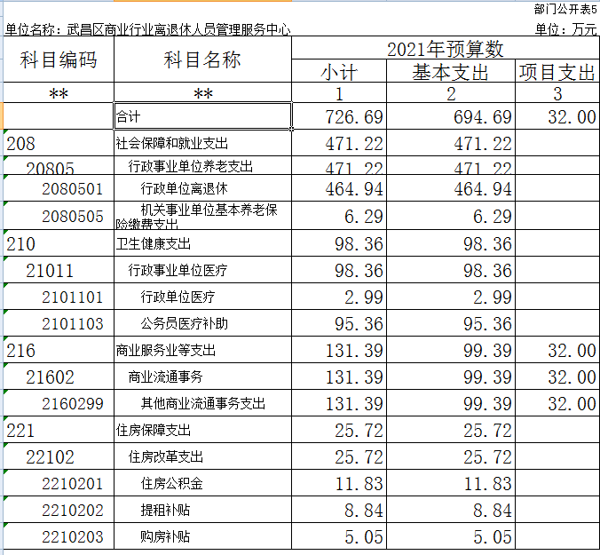 武汉市武昌区商业行业离退休人员管理服务中心2021年单位预算