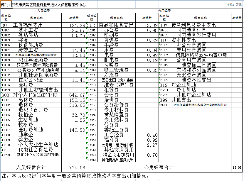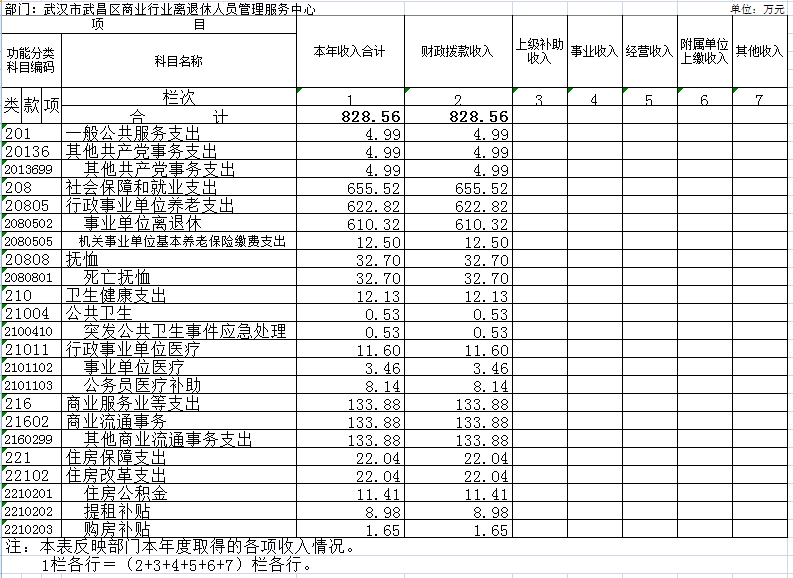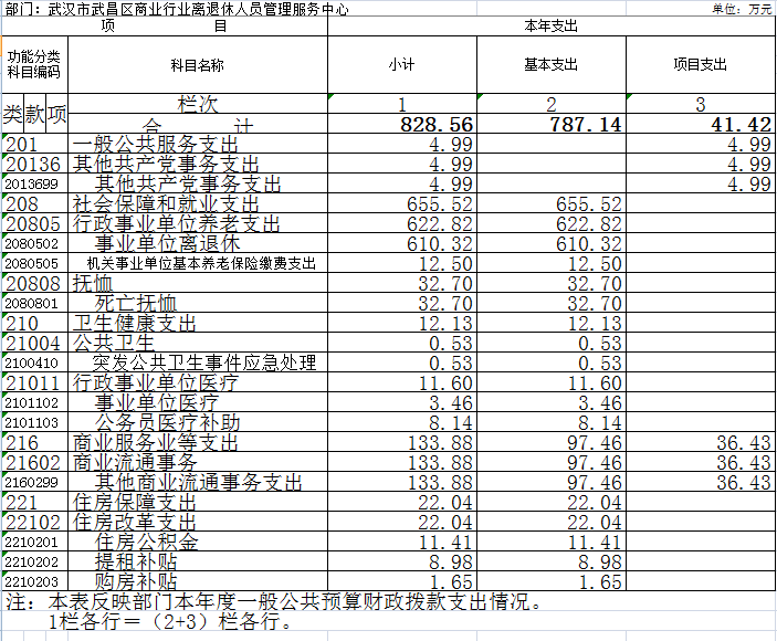 1.武汉市武昌区商业行业离退休人员管理服务中心本级。