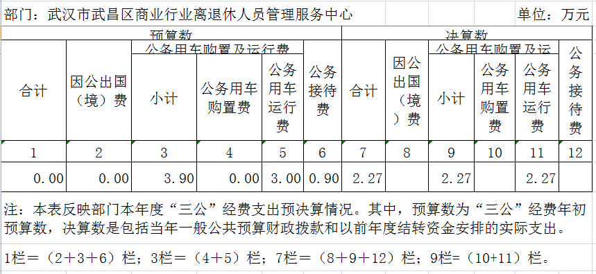 武汉市武昌区商业行业离退休人员管理服务中心有一般公共预算财政拨款预算安排“三公”经费的单位包括武汉市武昌区商业行业离退休人员管理服务中心本级 1 个全额拨款事业单位。