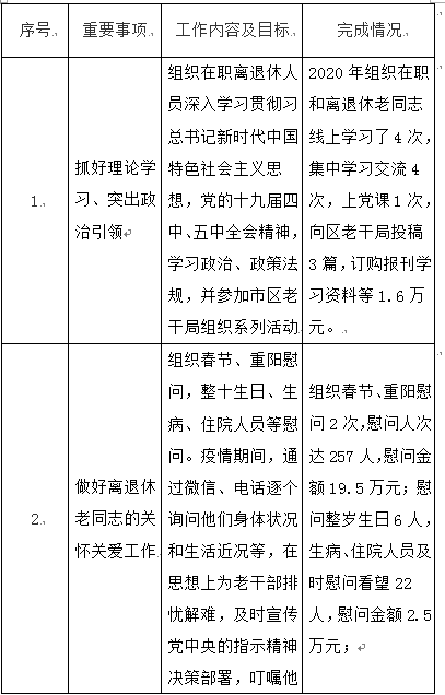- 做好离退休老同志的关怀关爱工作。