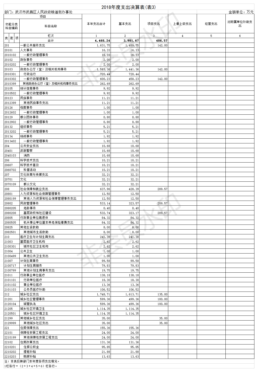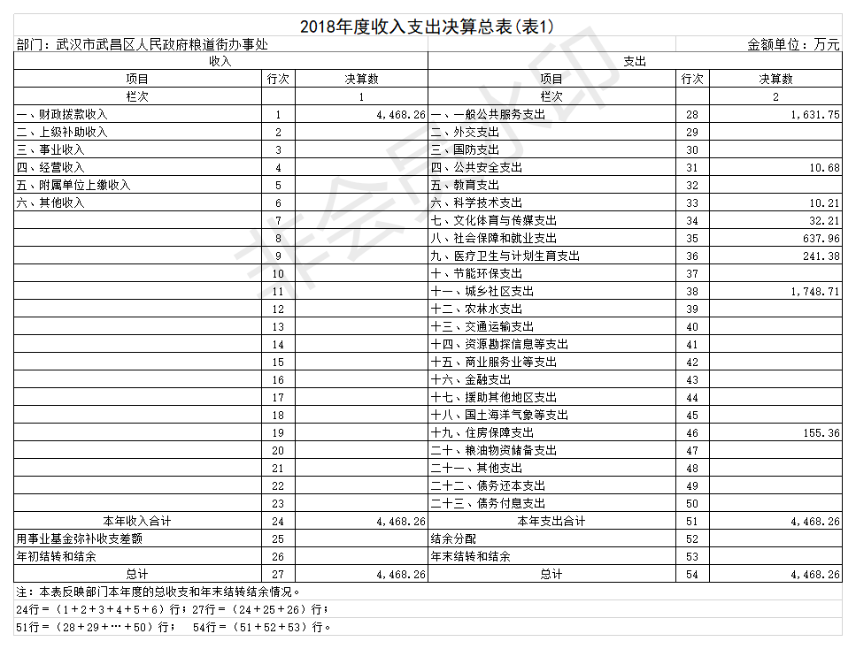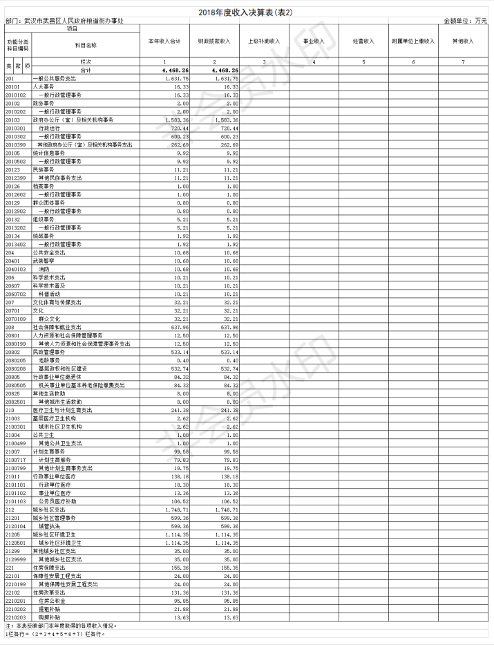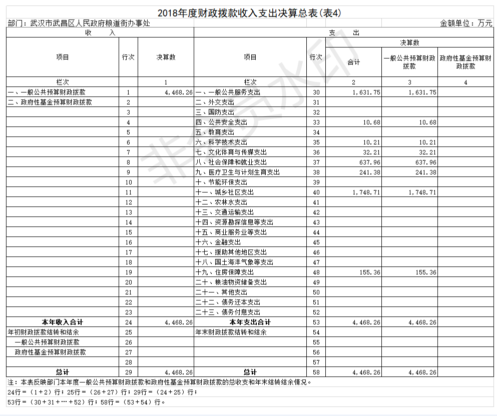 2018年度武汉市武昌区人民政府粮道街办事处部门决算