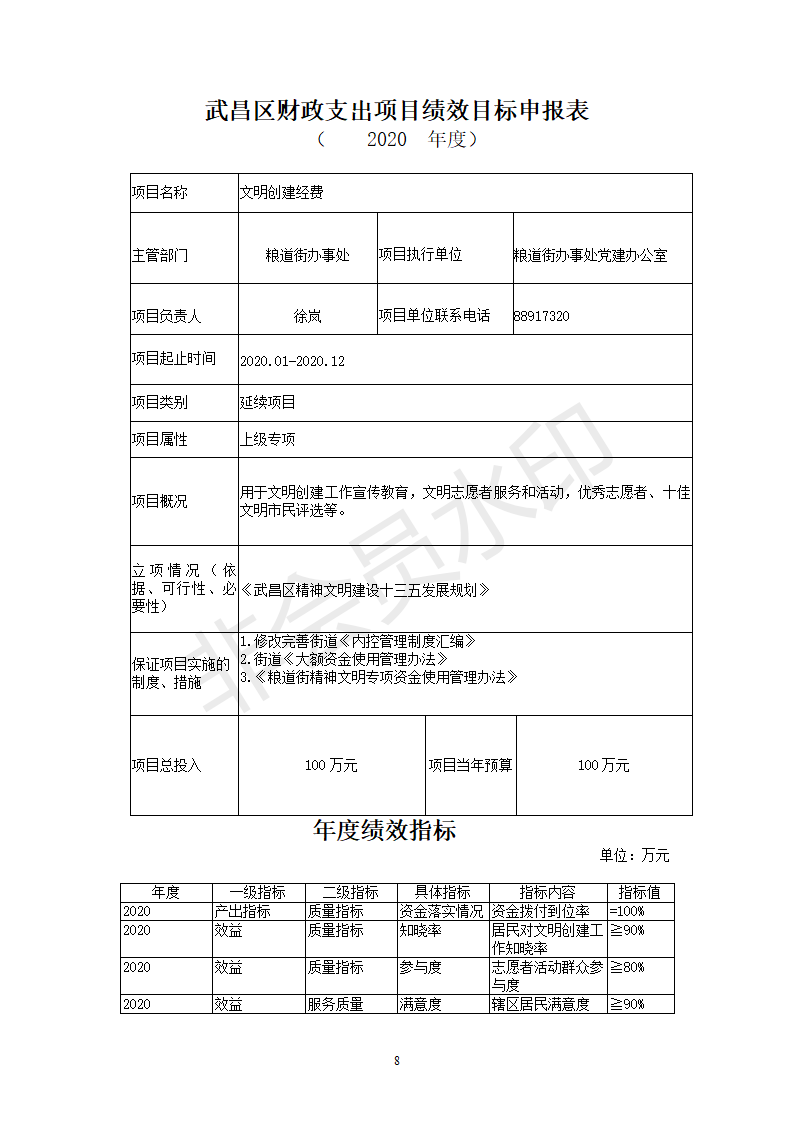 第一部分 武汉市武昌区人民政府粮道街办事处2020年部门预算公开说明