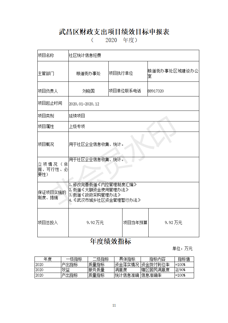 第二部分 武汉市武昌区人民政府粮道街办事处2020年部门预算表