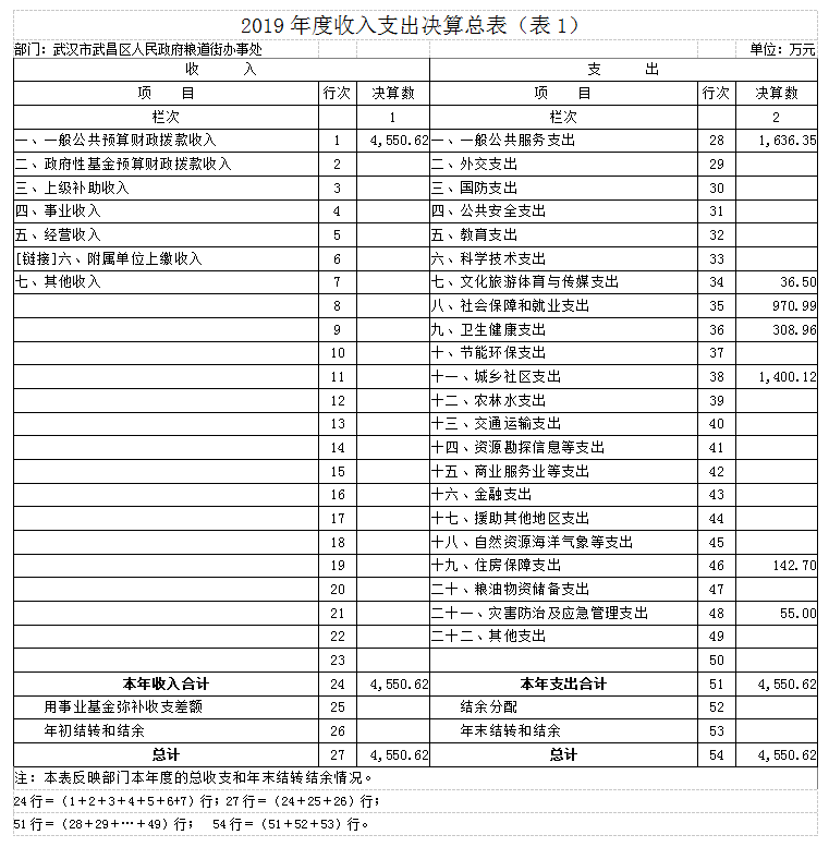 第二部分 武汉市武昌区人民政府粮道街办事处2019年度部门决算表
