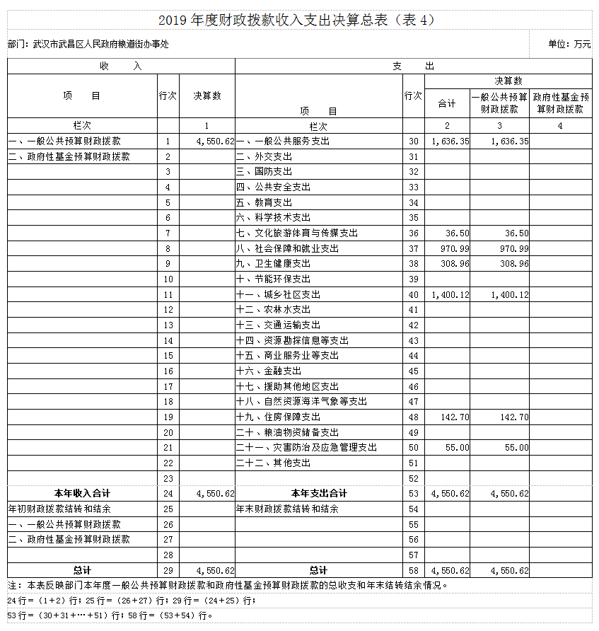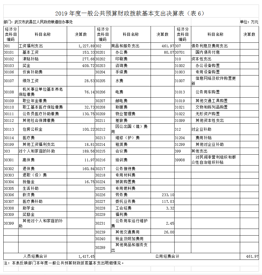 2019年度武汉市武昌区人民政府粮道街办事处部门决算