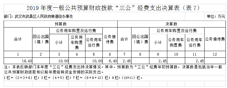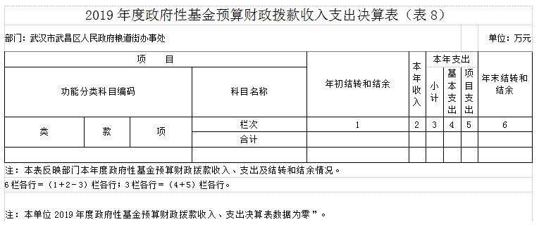 部门:武汉市武昌区人民政府粮道街办事处 单位:万元 |
