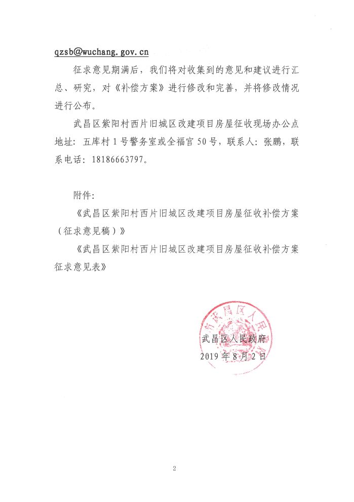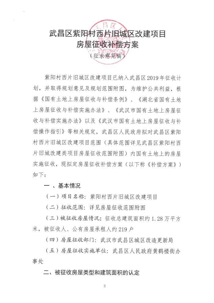 关于《武昌区紫阳村西片旧城区改建项目房屋征收补偿方案(征求意见稿)》公开征求意见的公告