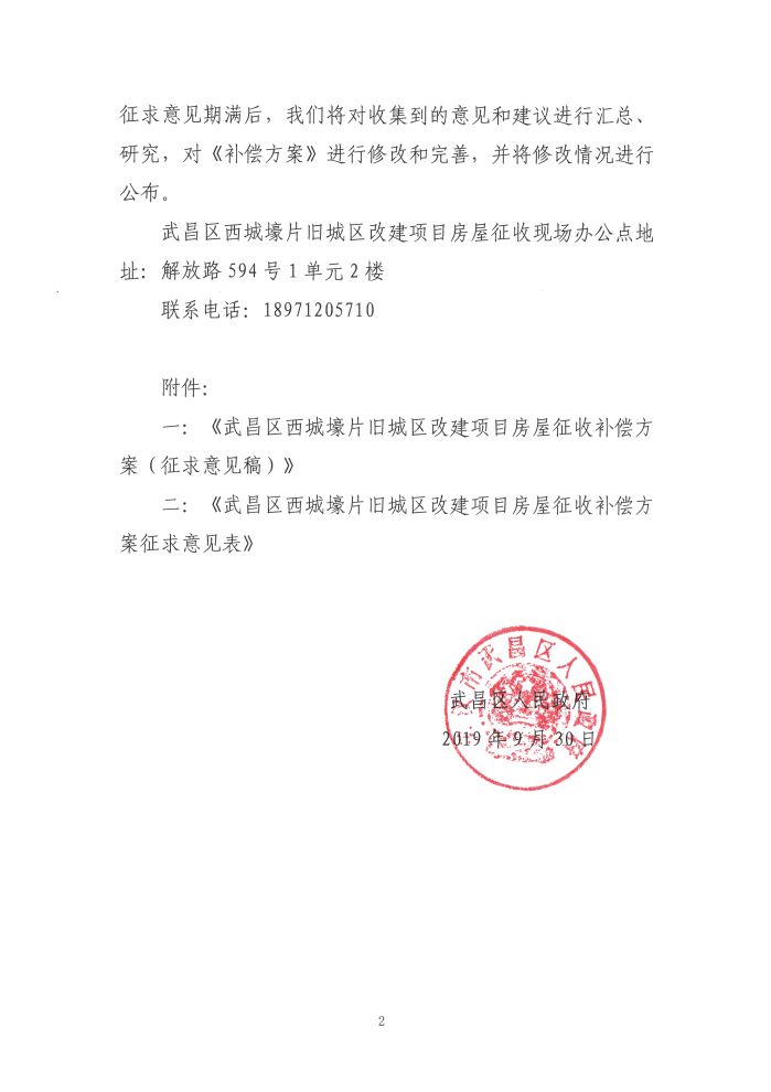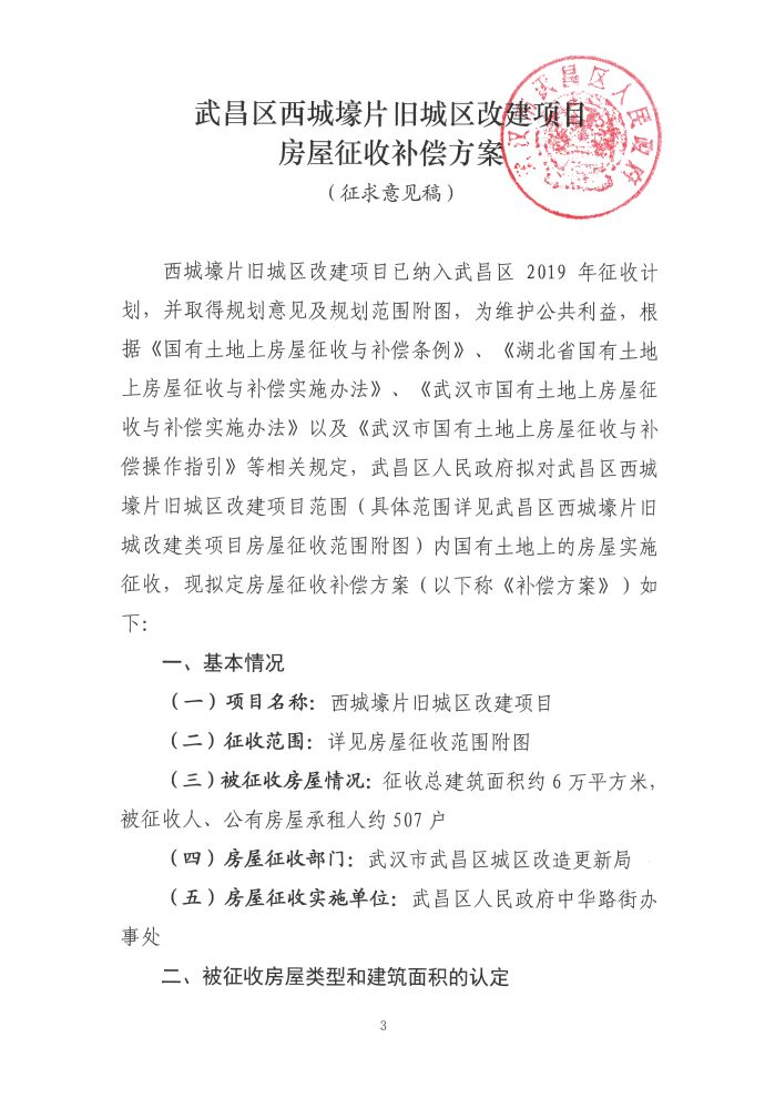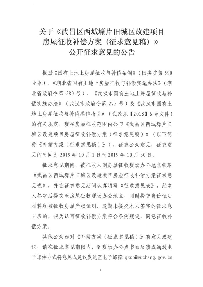 关于《武昌区西城壕片旧城区改建项目房屋征收补偿方案(征求意见稿)》公开征求意见的公告