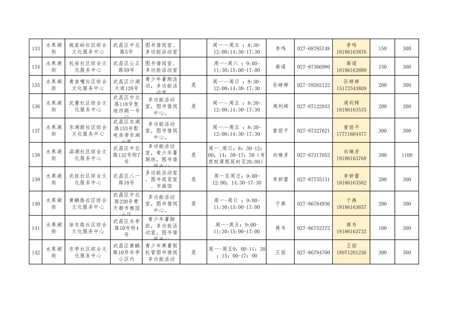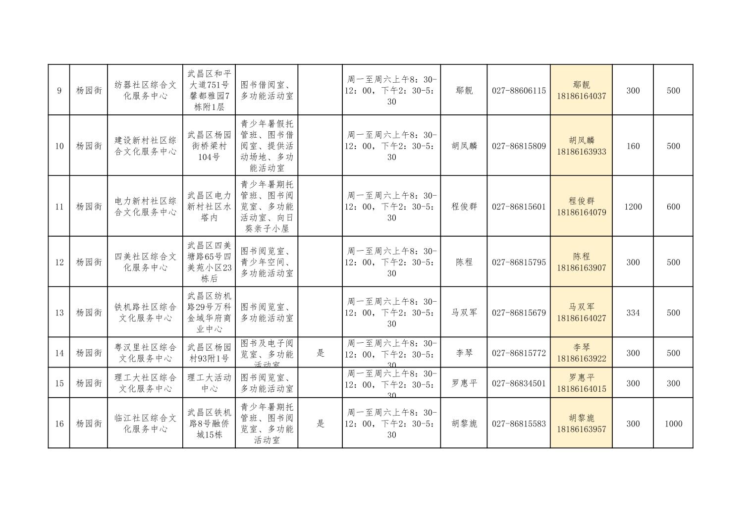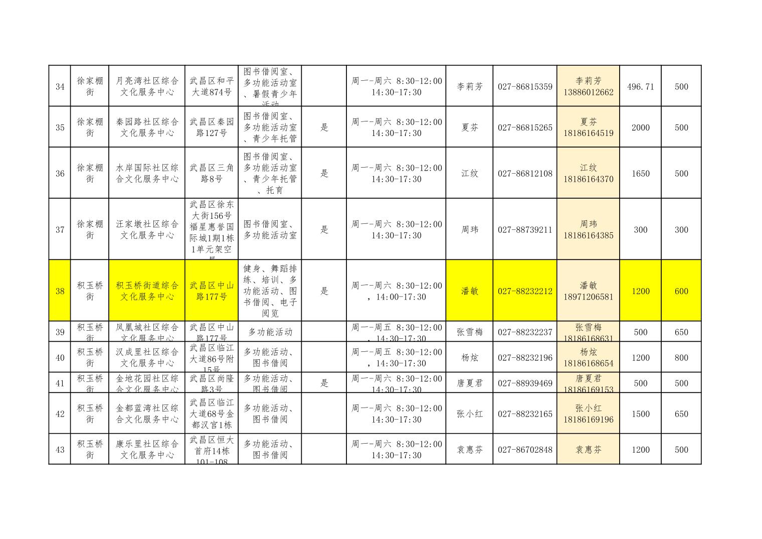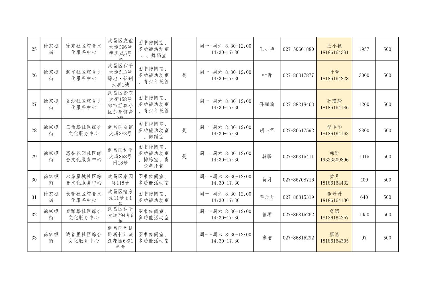202503武昌区公共文化体育设施目录(街道社区中心)