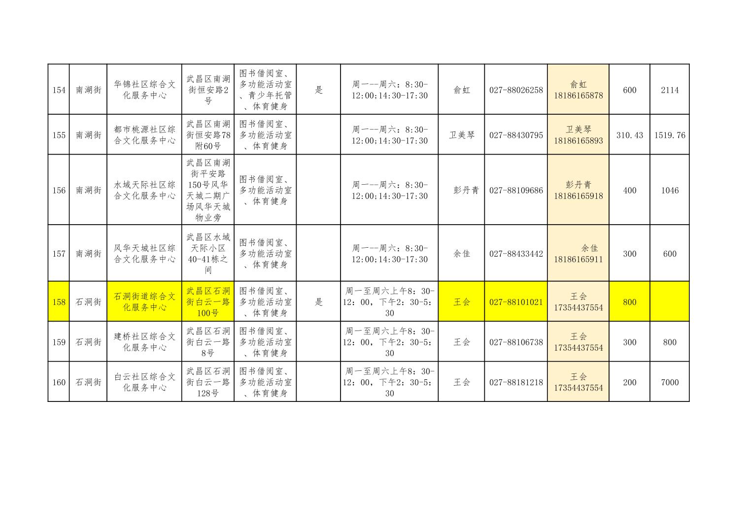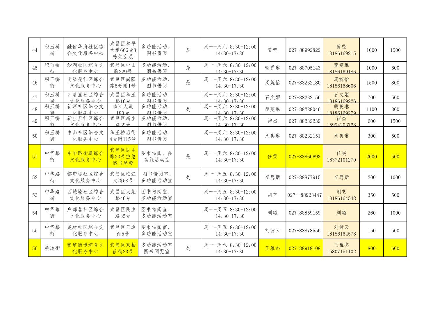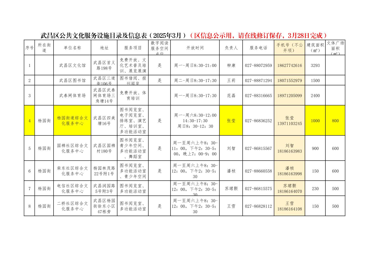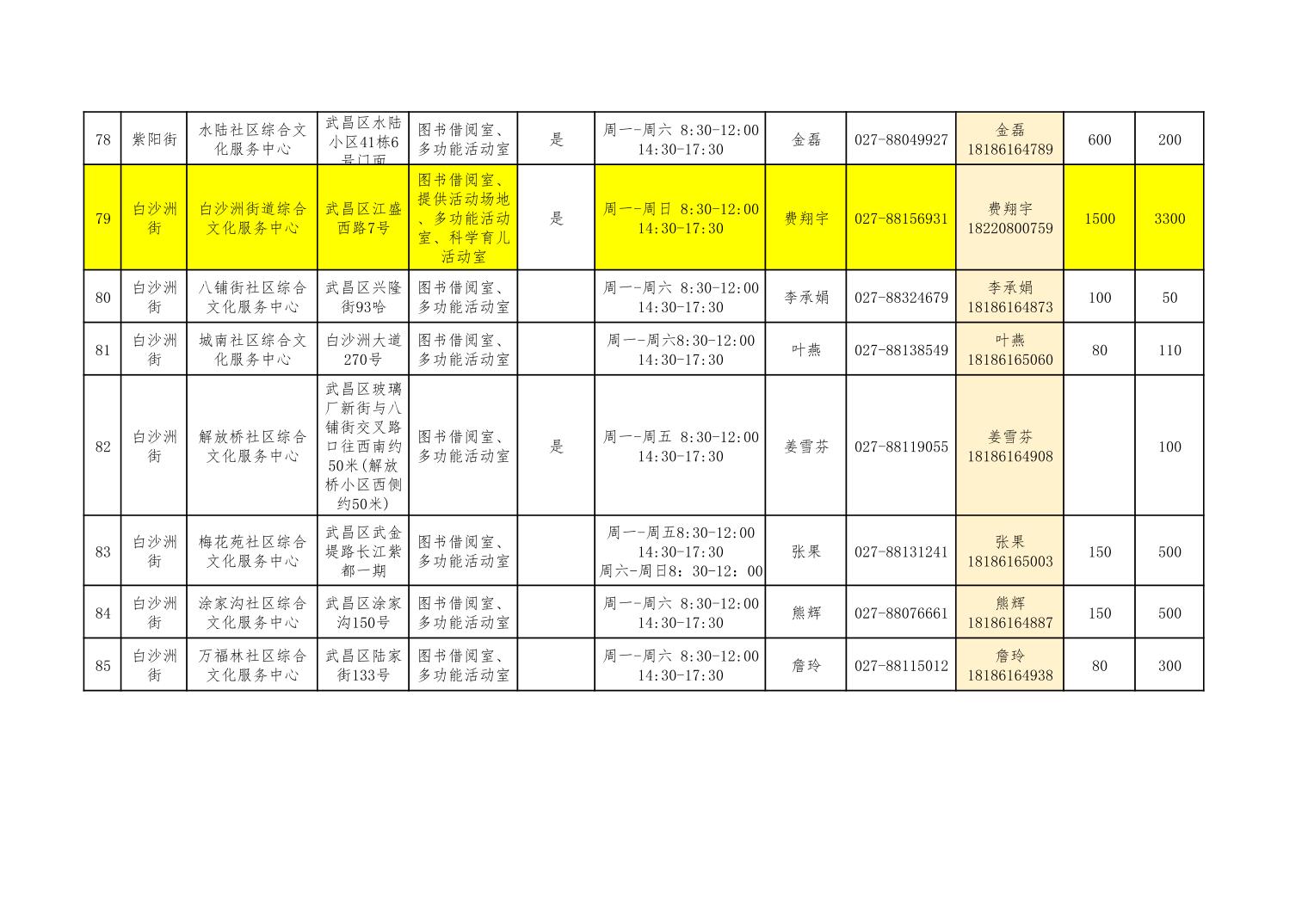 202503武昌区公共文化体育设施目录(街道社区中心)