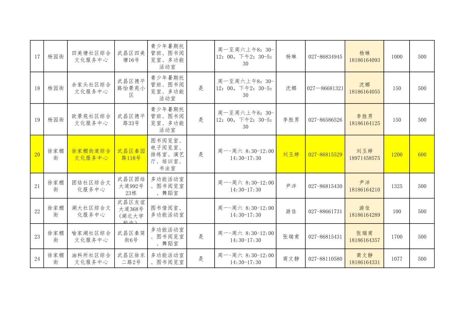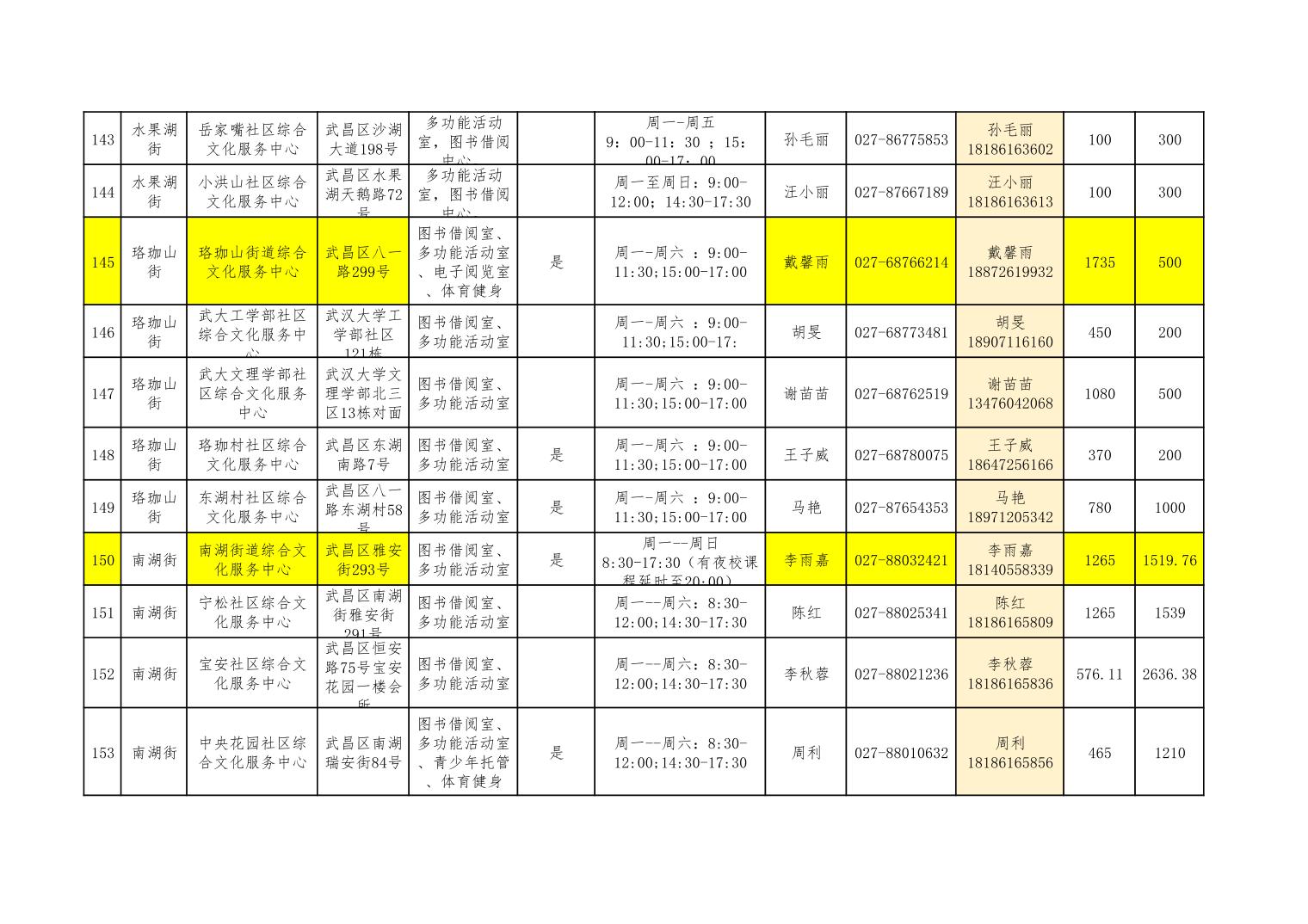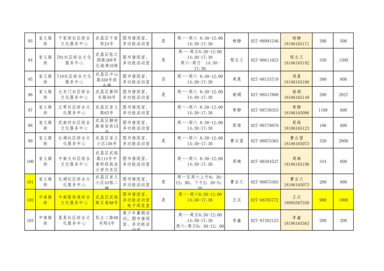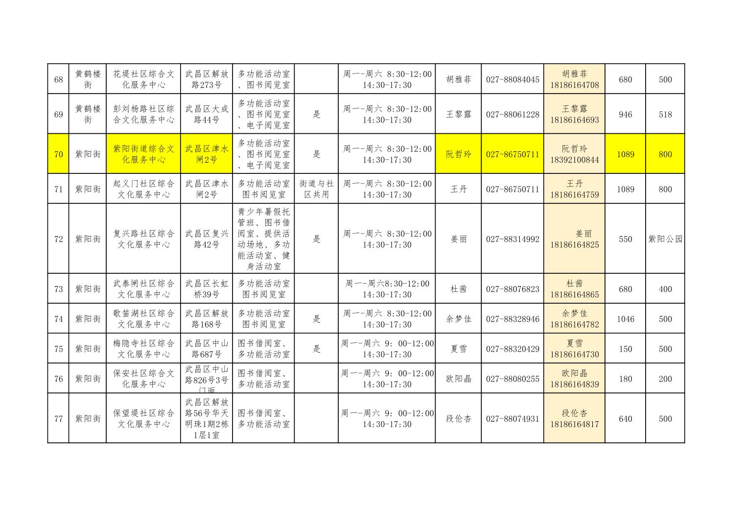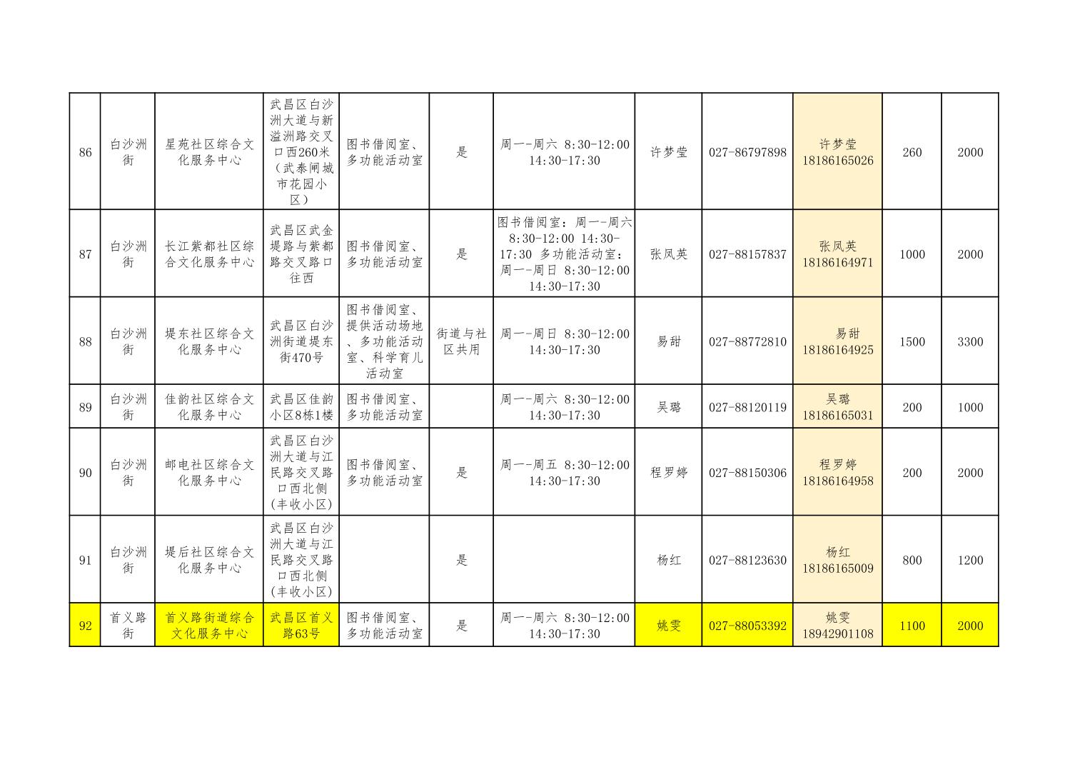 202503武昌区公共文化体育设施目录(街道社区中心)