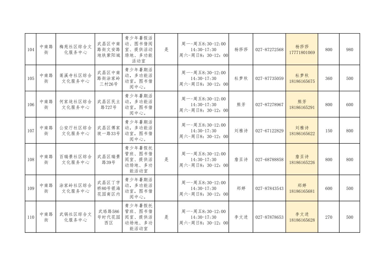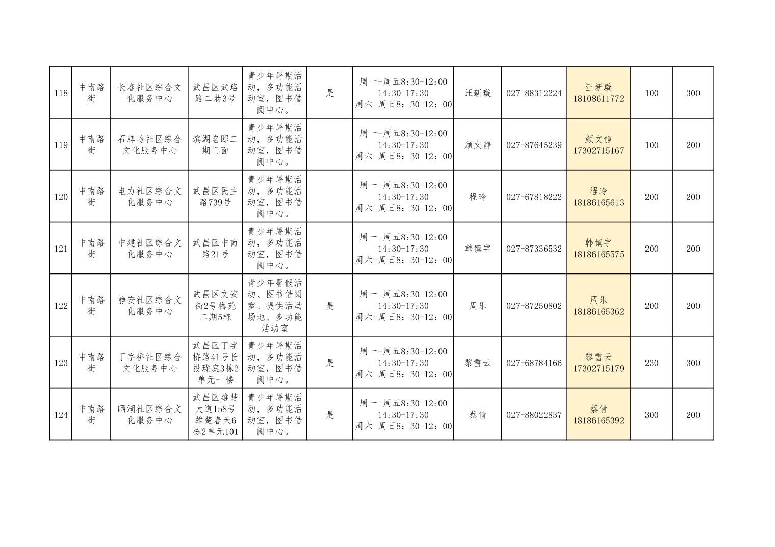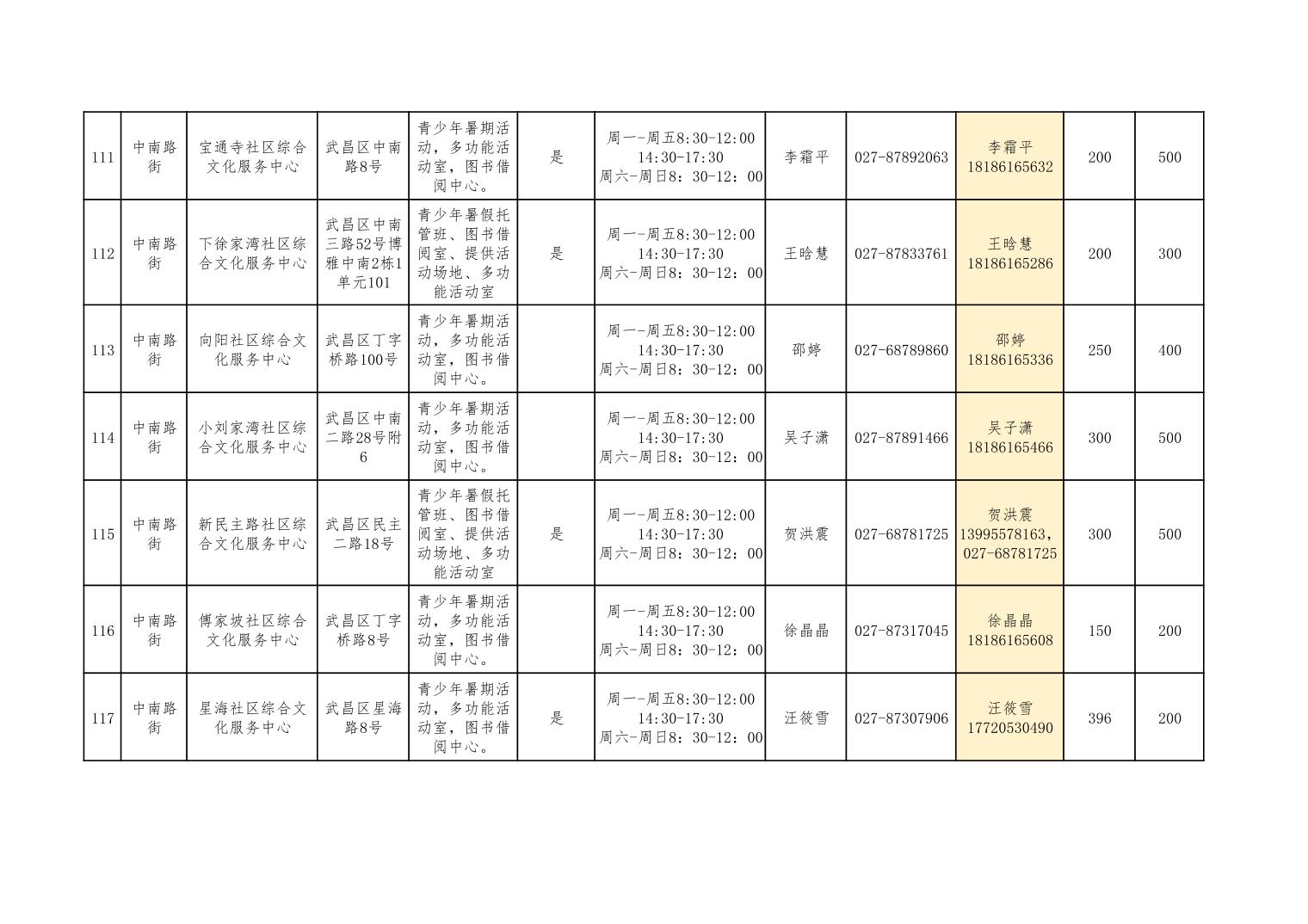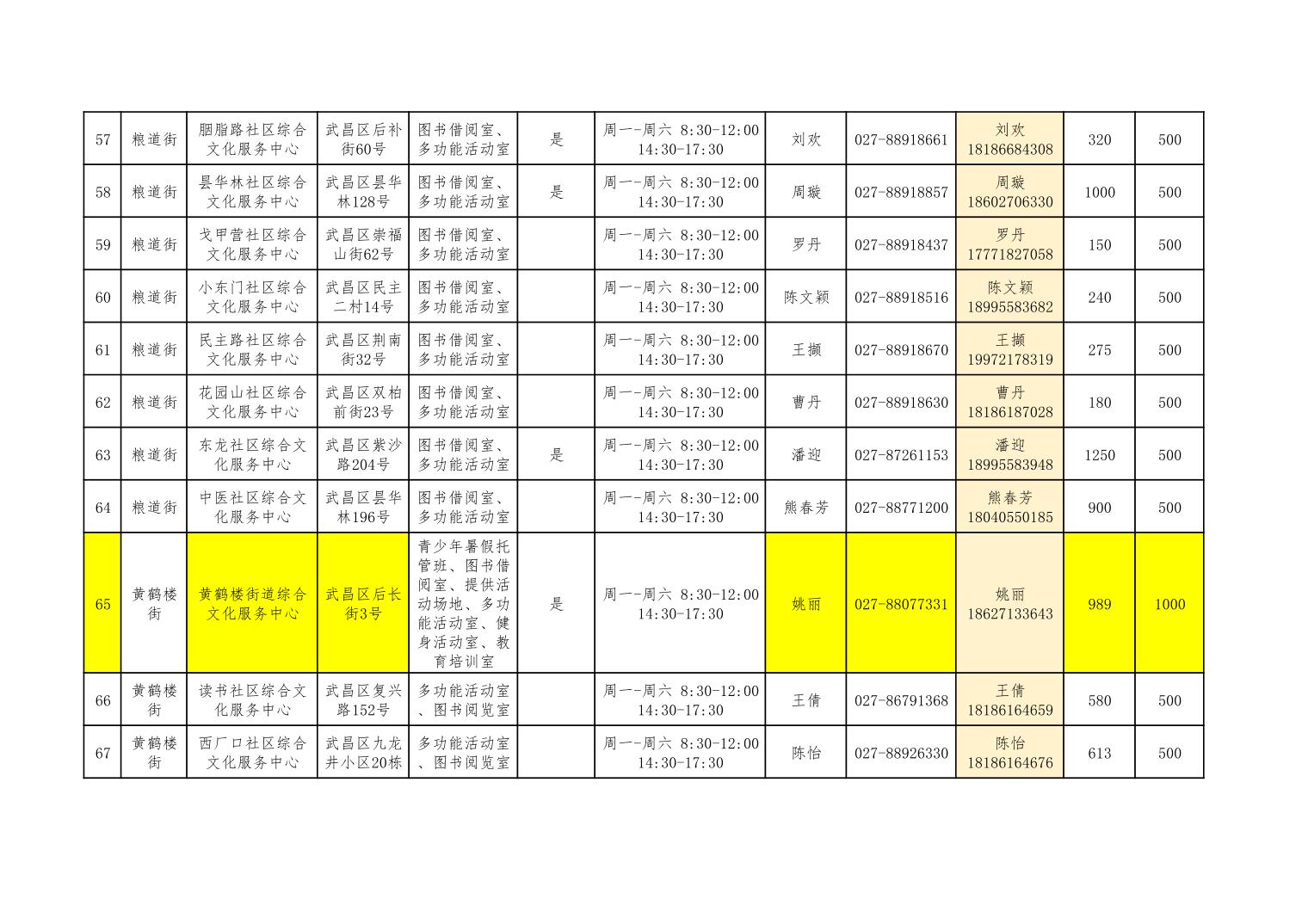 202503武昌区公共文化体育设施目录(街道社区中心)