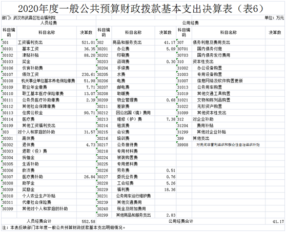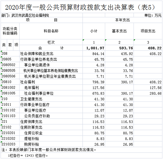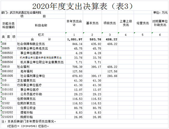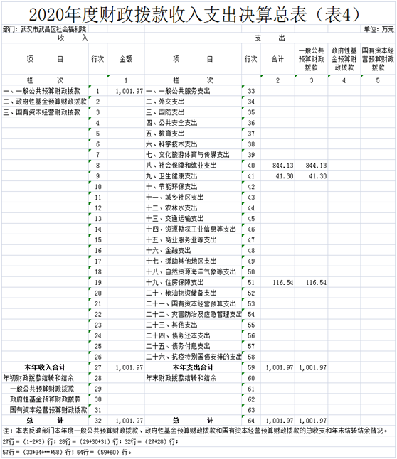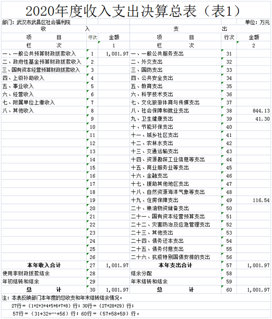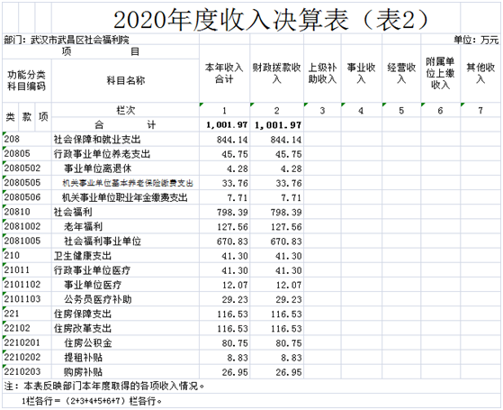 第二部分 武汉市武昌区社会福利院2020年度部门决算表