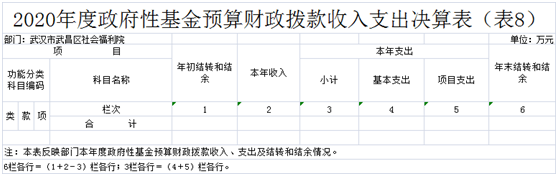 八、政府性基金预算财政拨款收入支出决算表(表8)