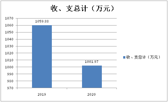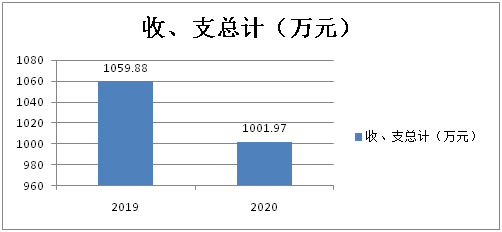 2020年度收、支总计1,001.97万元。与2019年度相比,收、支总计各增加(减少)-57.91万元,增长(下降)-5.46%,主要原因是我单位厉行节约,公用经费减少。