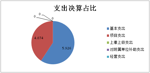 2020年度支出合计1,001.97万元。其中:基本支出593.76万元,占本年支出59.26%;项目支出408.22万元,占本年支出40.74%;上缴上级支出0万元,占本年支出0%;经营支出0万元,占本年支出0%;对附属单位补助支出0万元,占本年支出0%。