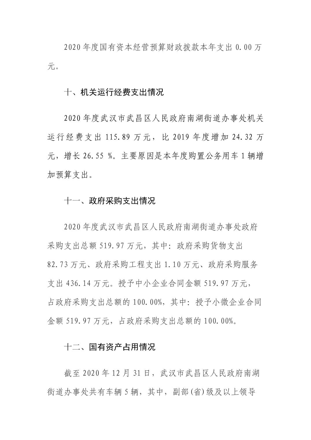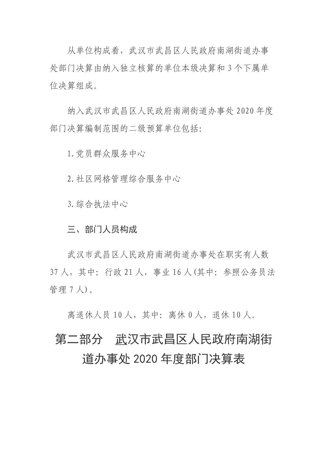 2020年度武汉市武昌区人民政府南湖街道办事处部门决算