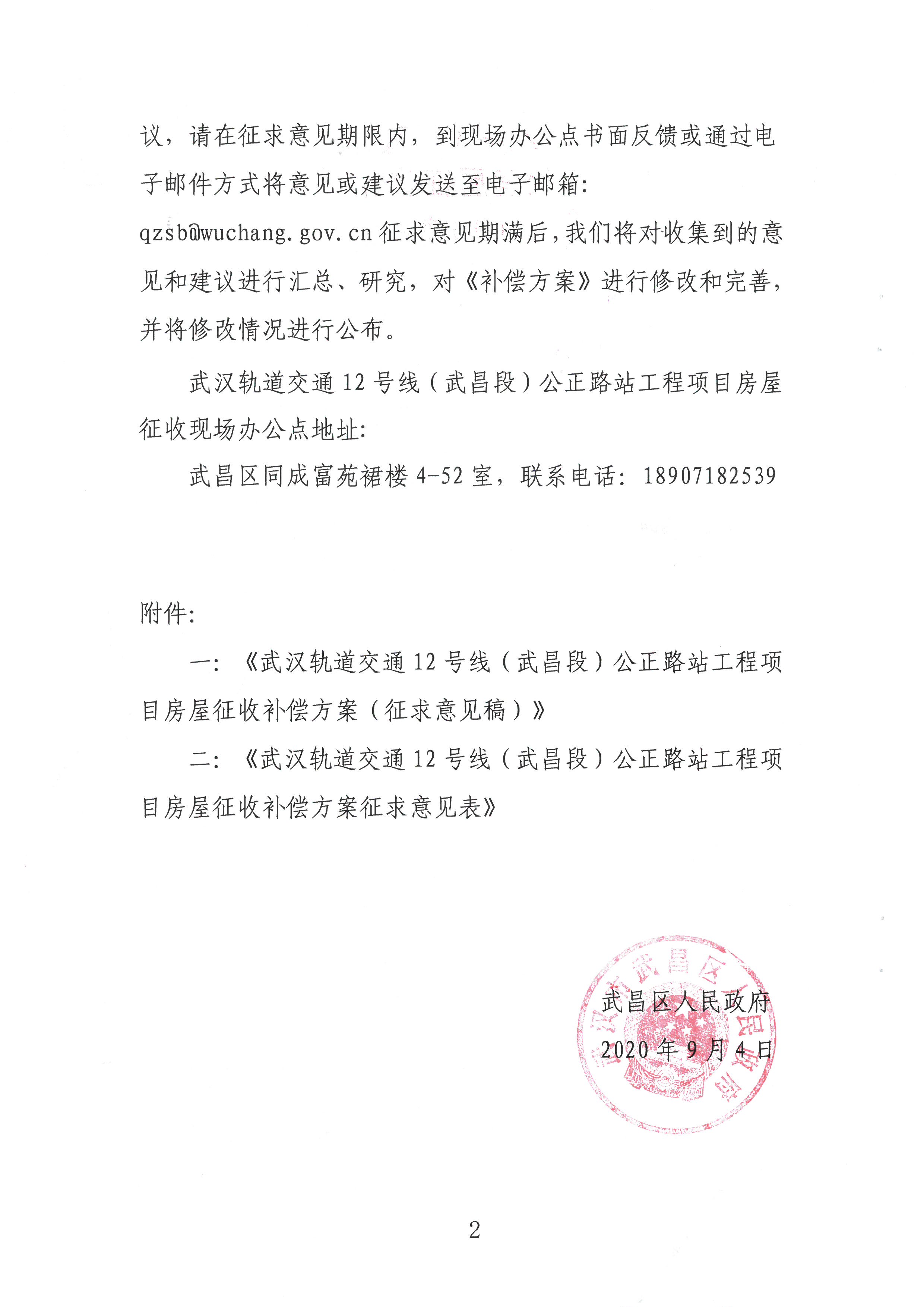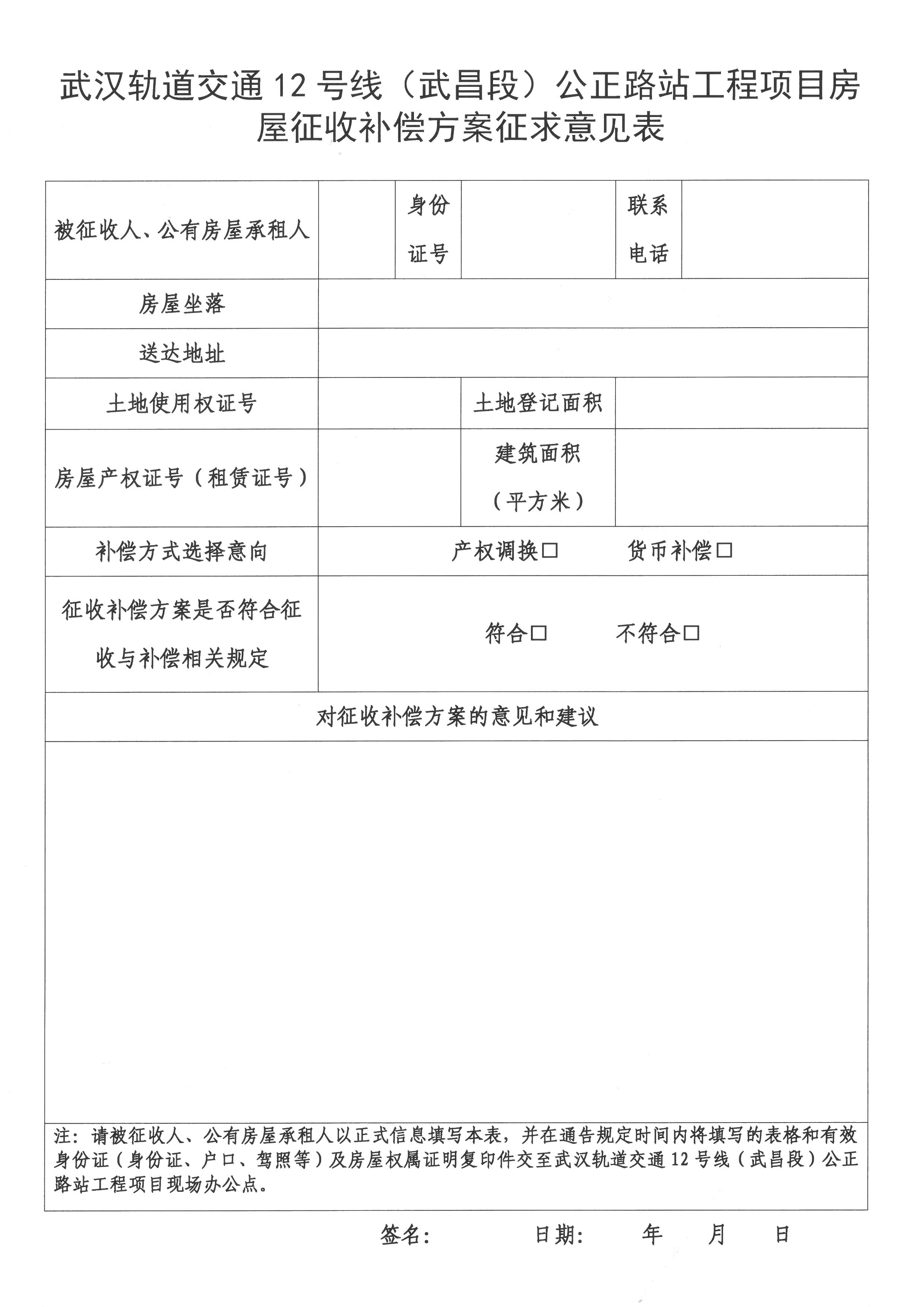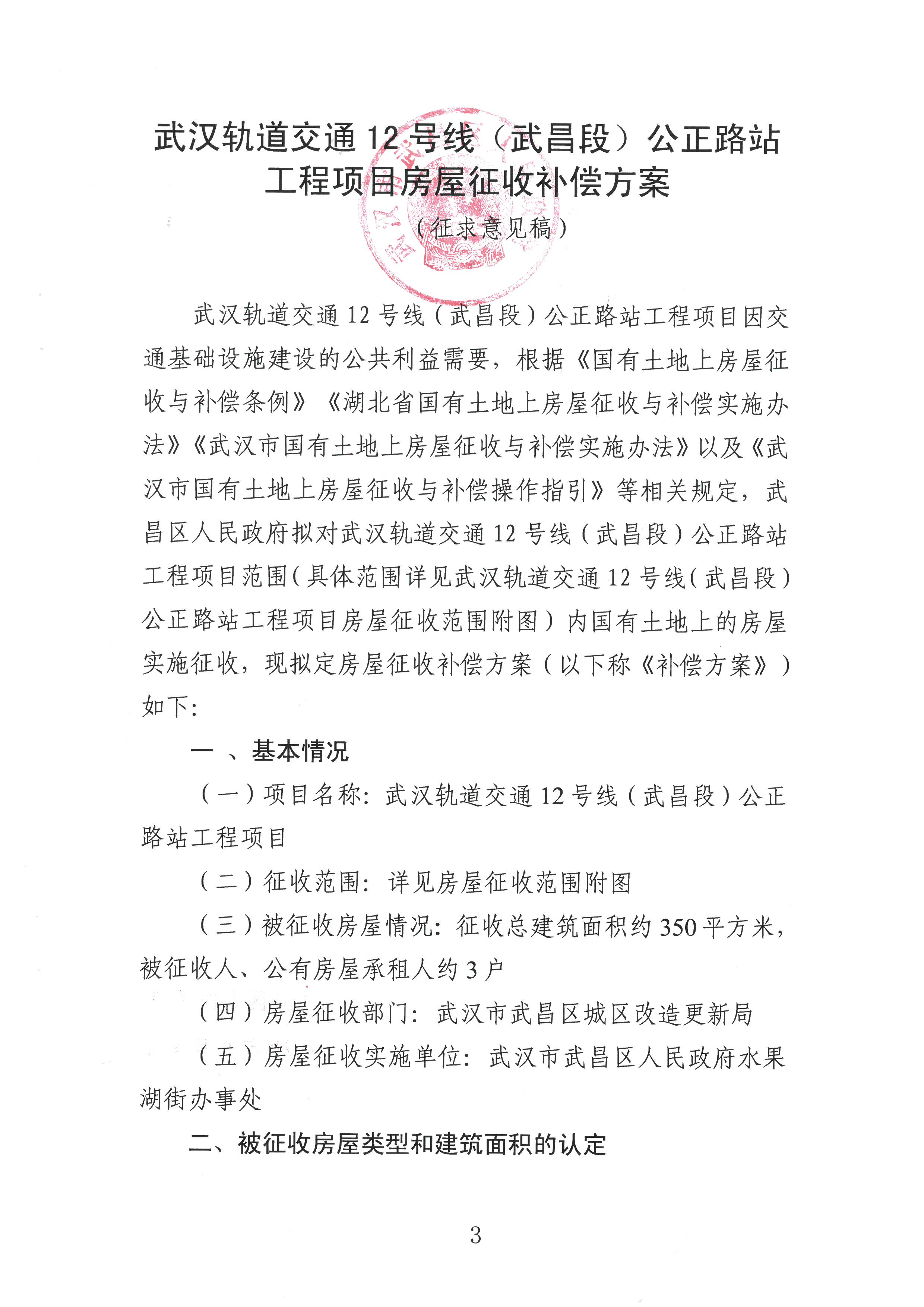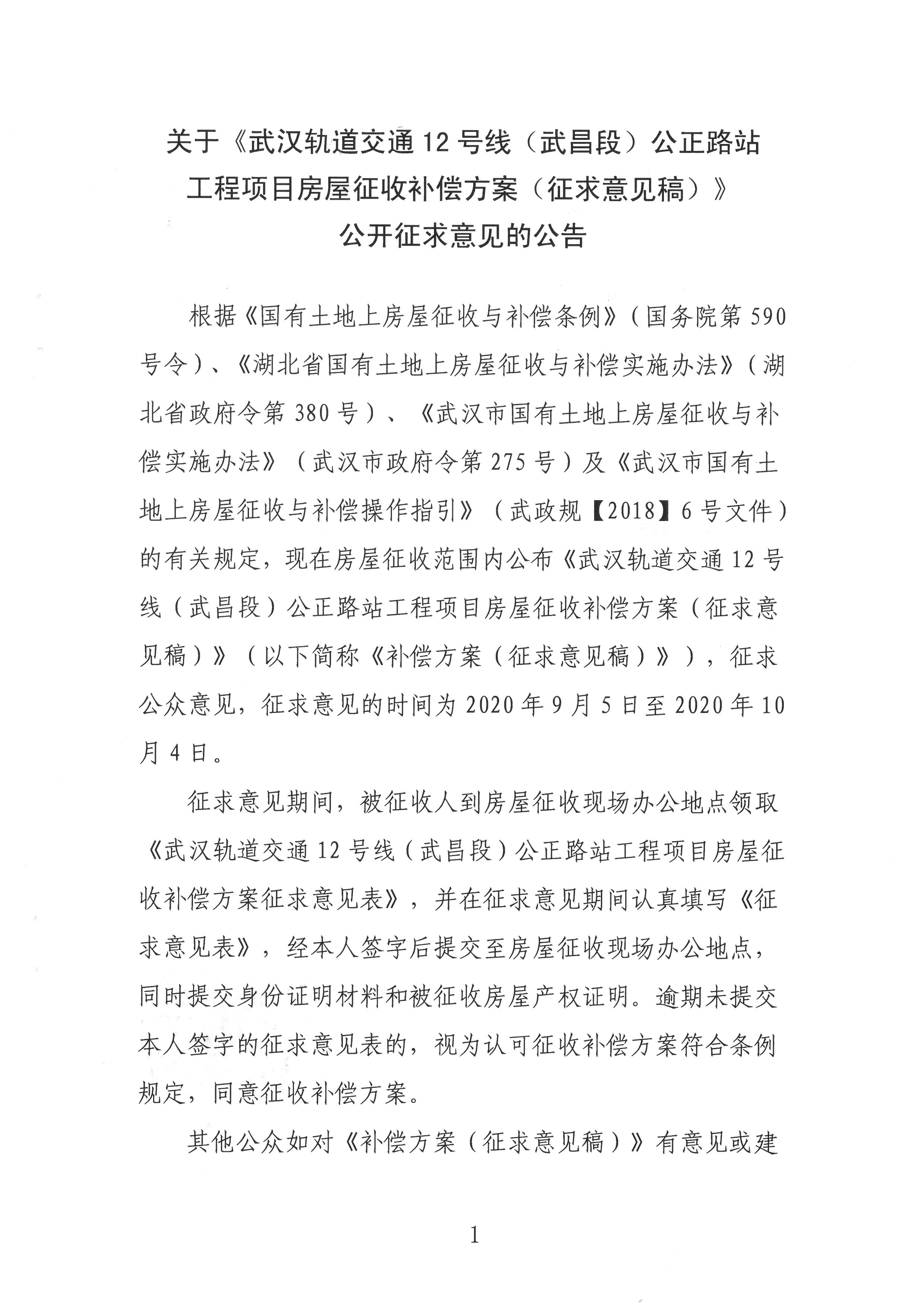 关于《武汉轨道交通12号线(武昌段)公正路站工程项目房屋征收补偿方案(征求意见稿)》公开征求意见的公告