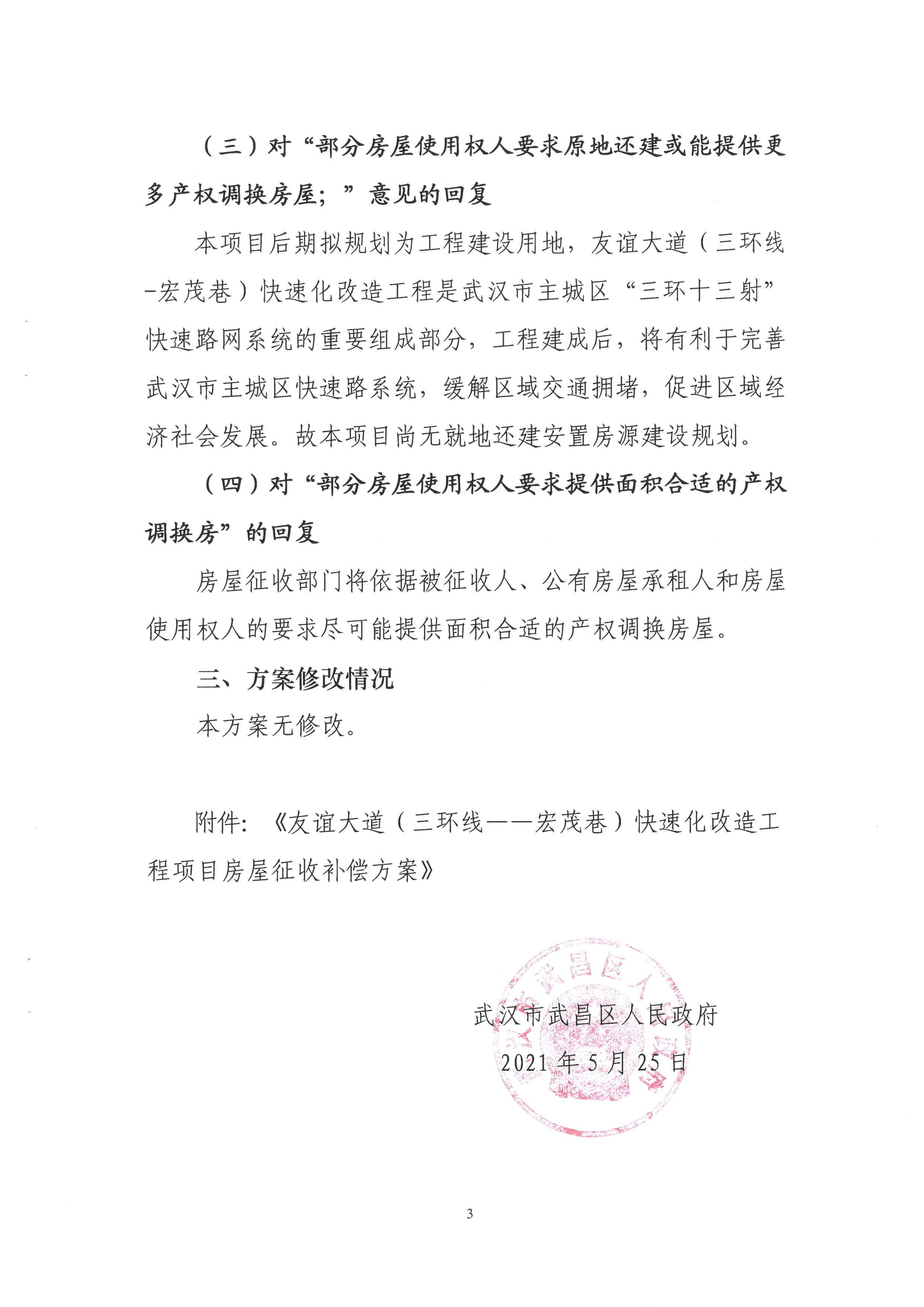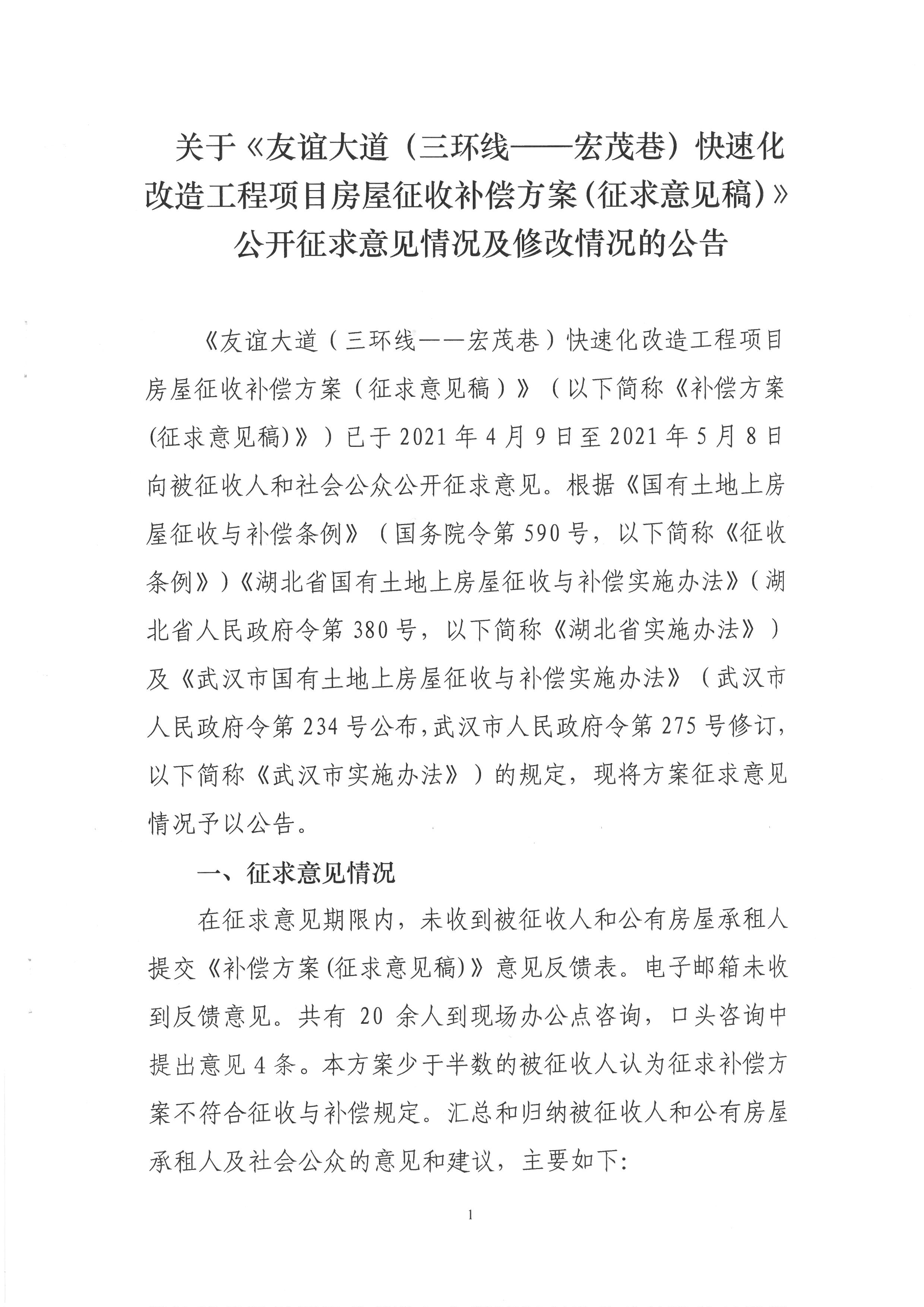关于《友谊大道(三环线——宏茂巷)快速化改造工程项目房屋征收补偿方案(征求意见稿)》公开征求意见情况及修改情况的公告