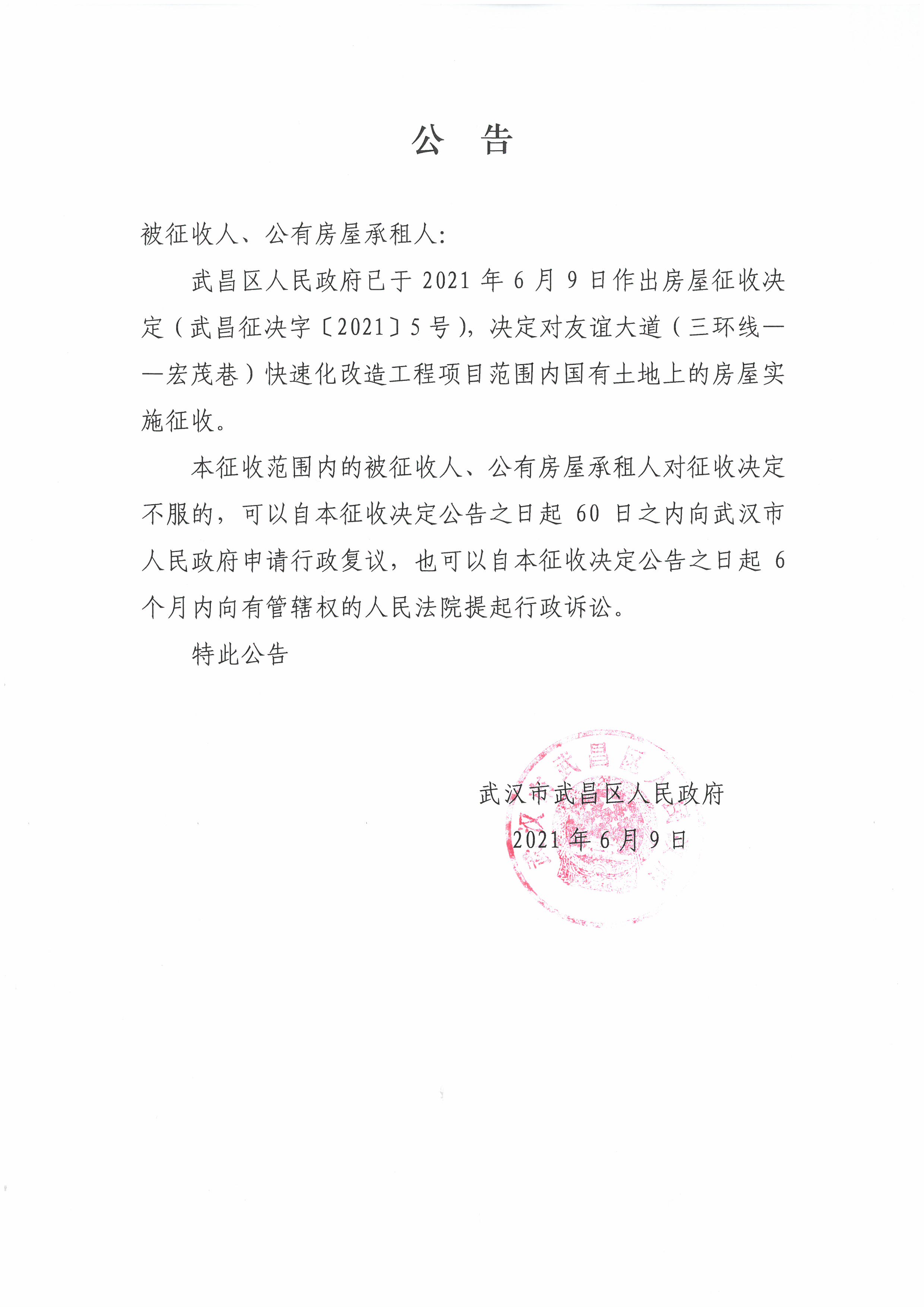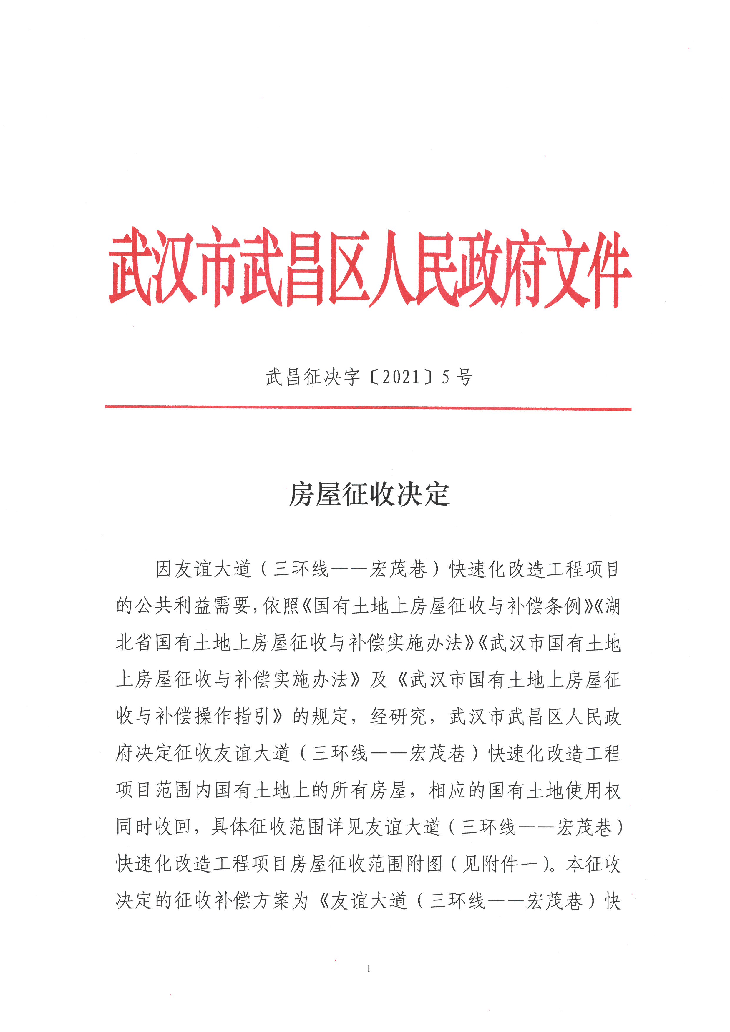 友谊大道(三环线——宏茂巷)快速化改造工程项目房屋征收决定