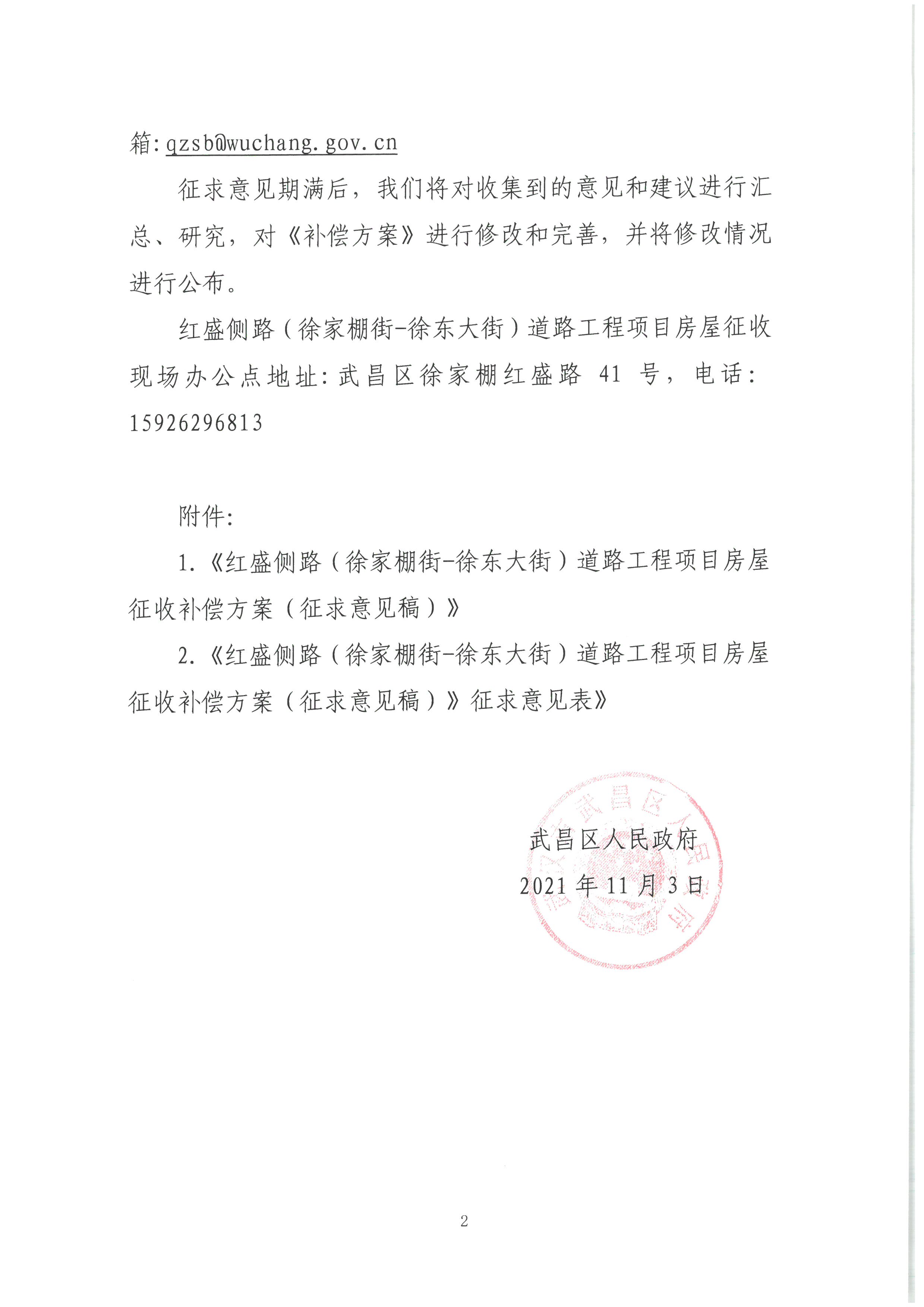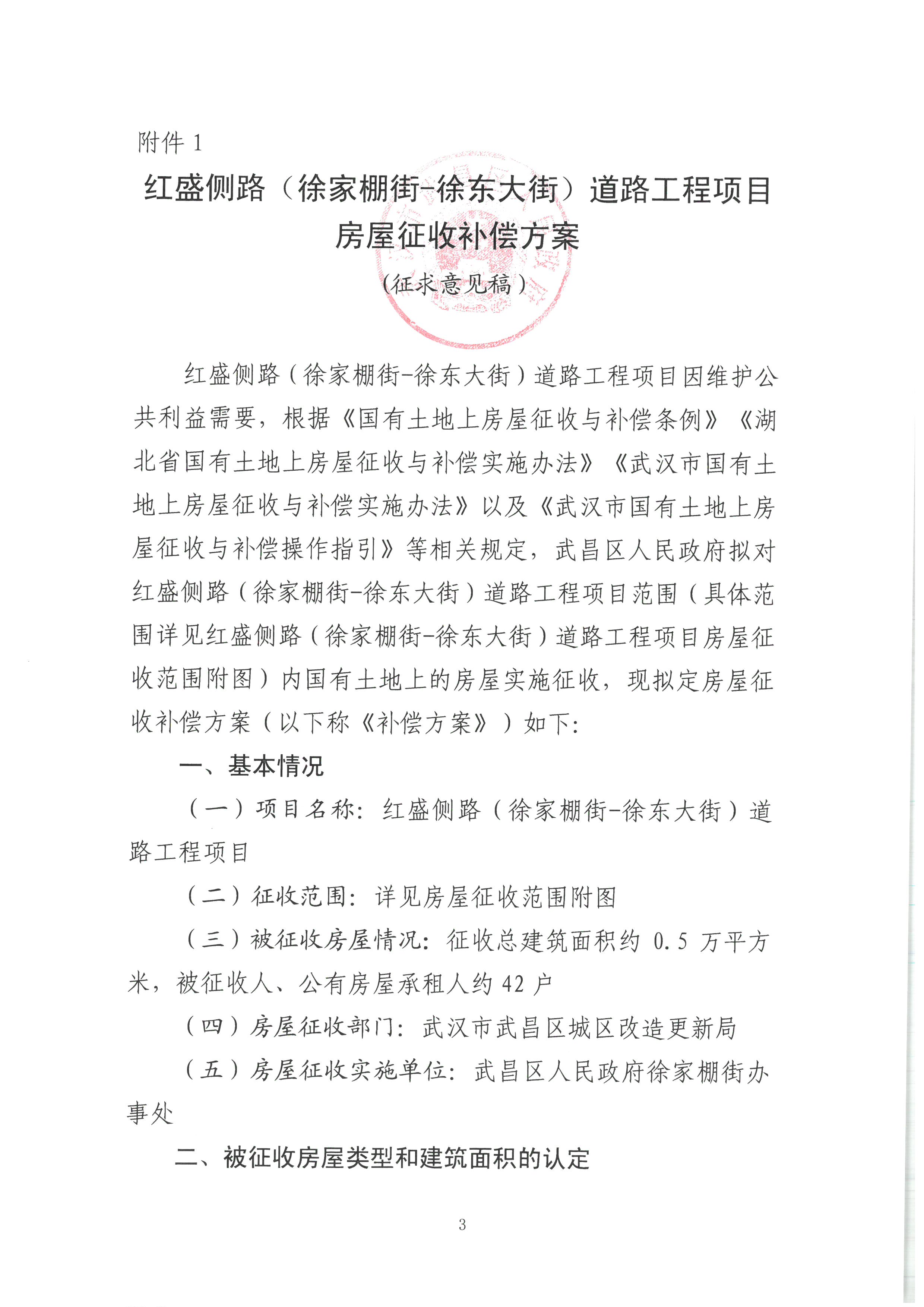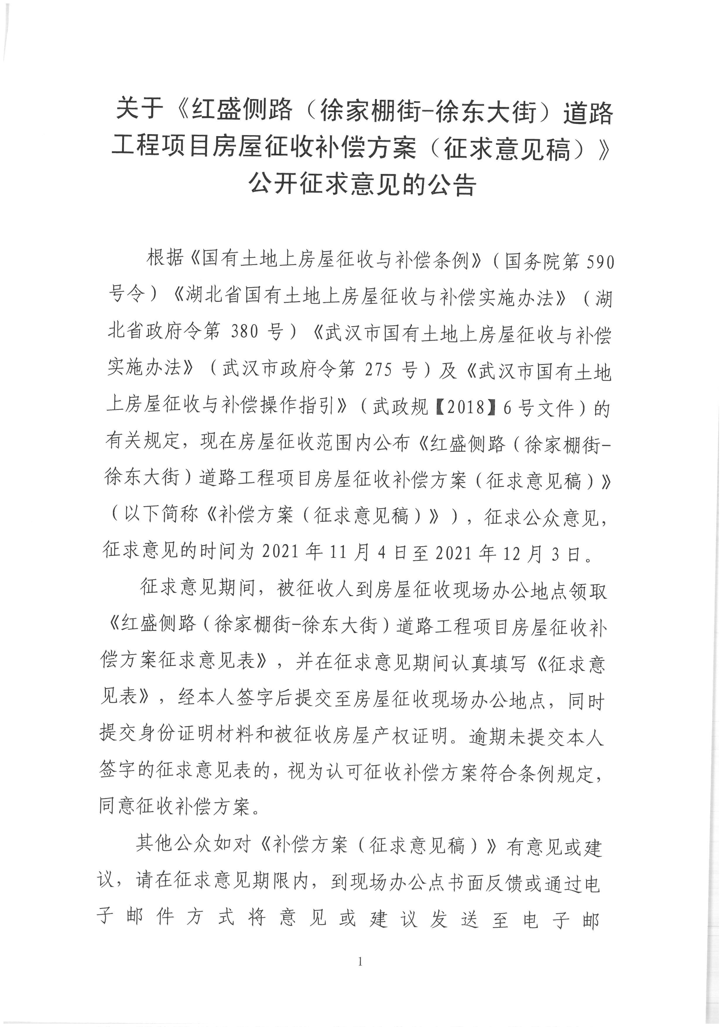 关于《红盛侧路(徐家棚街——徐东大街)道路工程项目房屋征收补偿方案(征求意见稿)》公开征求意见的公告