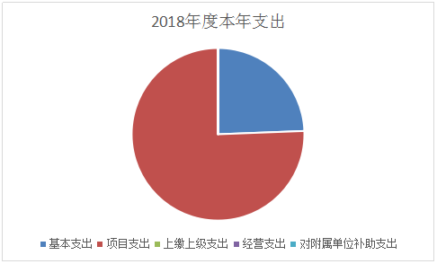2018年度本年支出合计5,892.82万元。其中:基本支出1,437.52万元,占本年支出24.40%;项目支出4,455.30万元,占本年支出75.60%;上缴上级支出0.00万元,占本年支出0.00%;经营支出 0.00万元,占本年支出0.00%;对附属单位补助支出0.00万元,占本年支出0.00%。