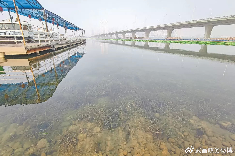 2020年12月27日上午10时,来到外沙湖游船码头处,立刻被清澈透亮的水体所吸引,站在岸边就可见湖底水草摇曳、小鱼游弋。