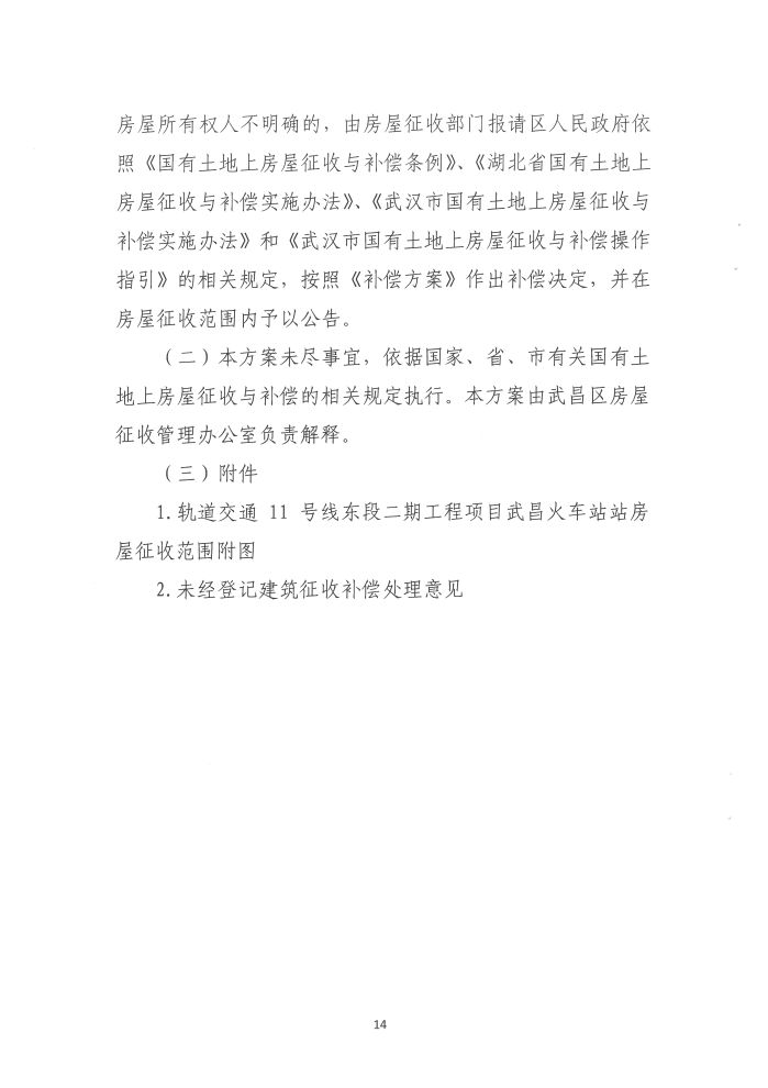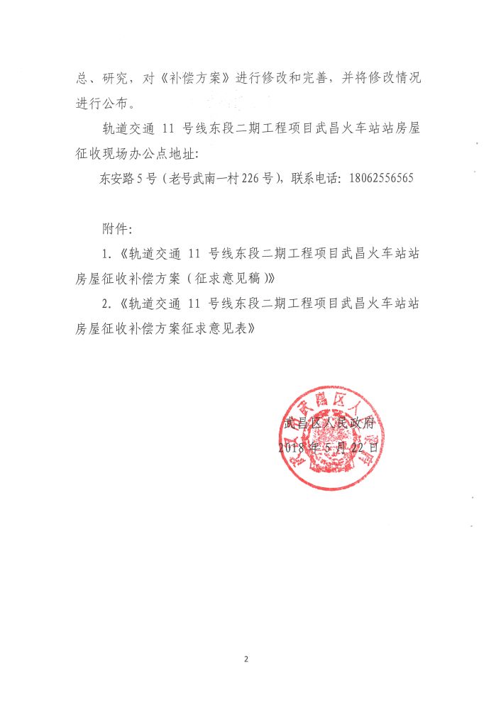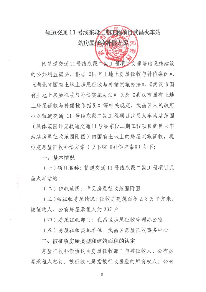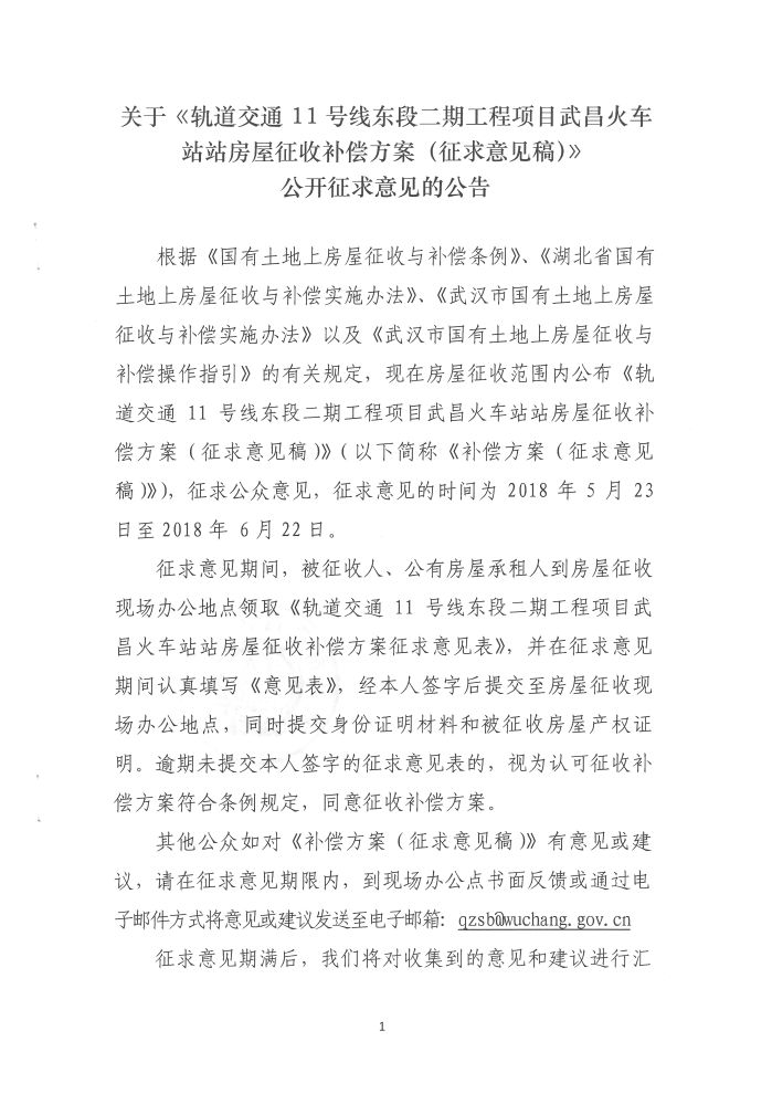 关于《轨道交通11号线东段二期工程武昌火车站站房屋征收补偿方案(征求意见稿)公开征求意见的公告》