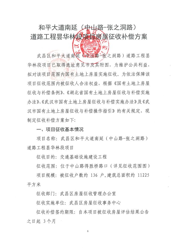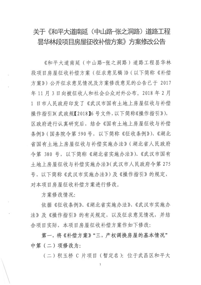 关于《和平大道南延(中山路-张之洞路)道路工程昙华林段项目房屋征收补偿方案》方案修改公告