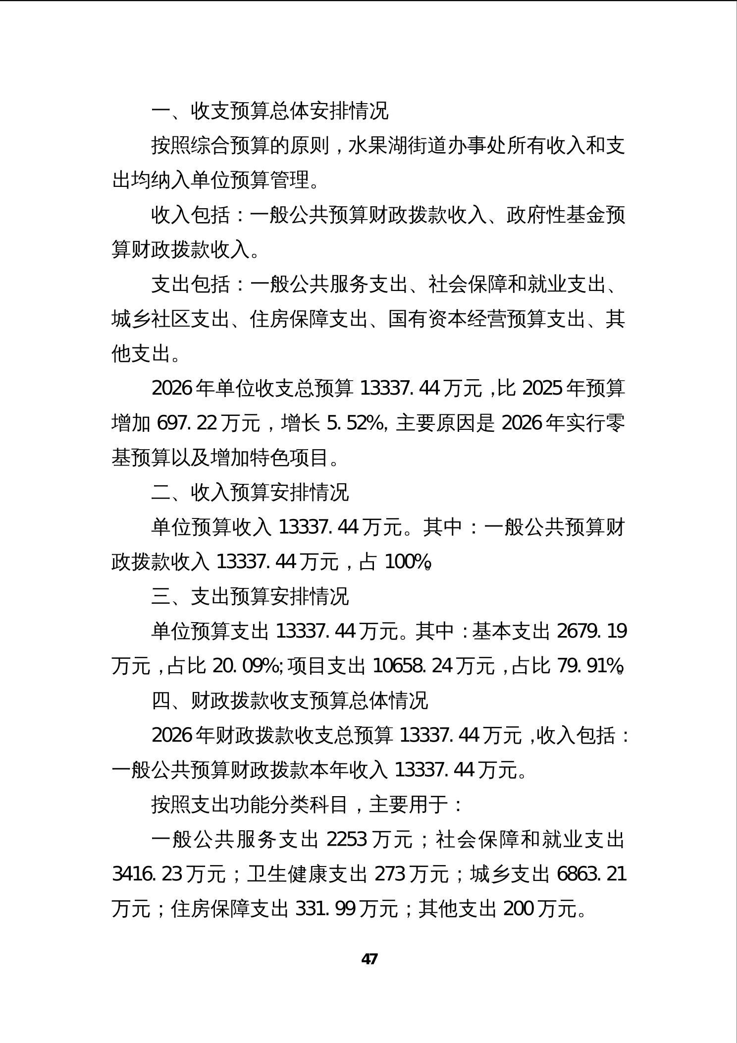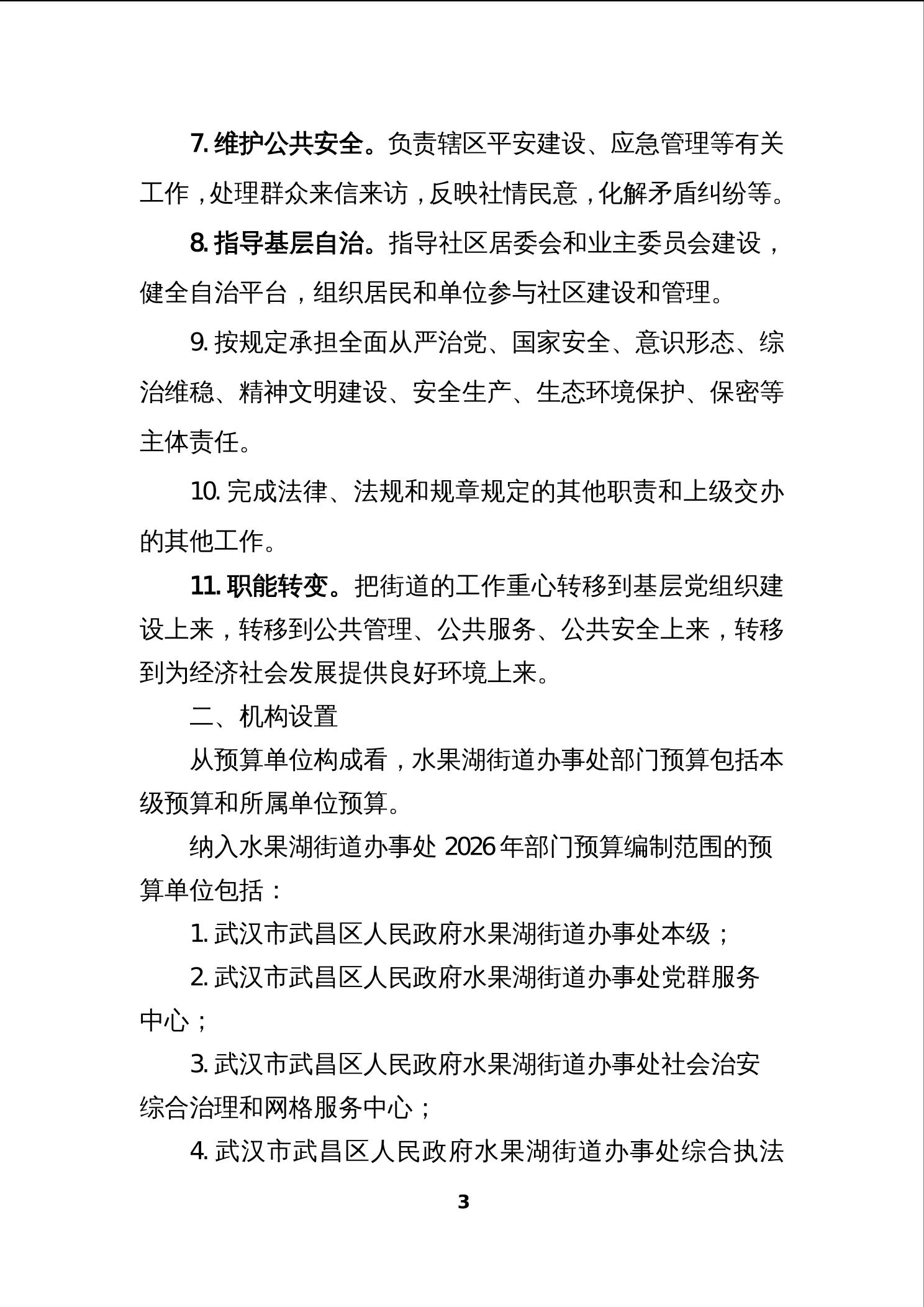 武汉市武昌区人民政府水果湖街道办事处2026年部门预算