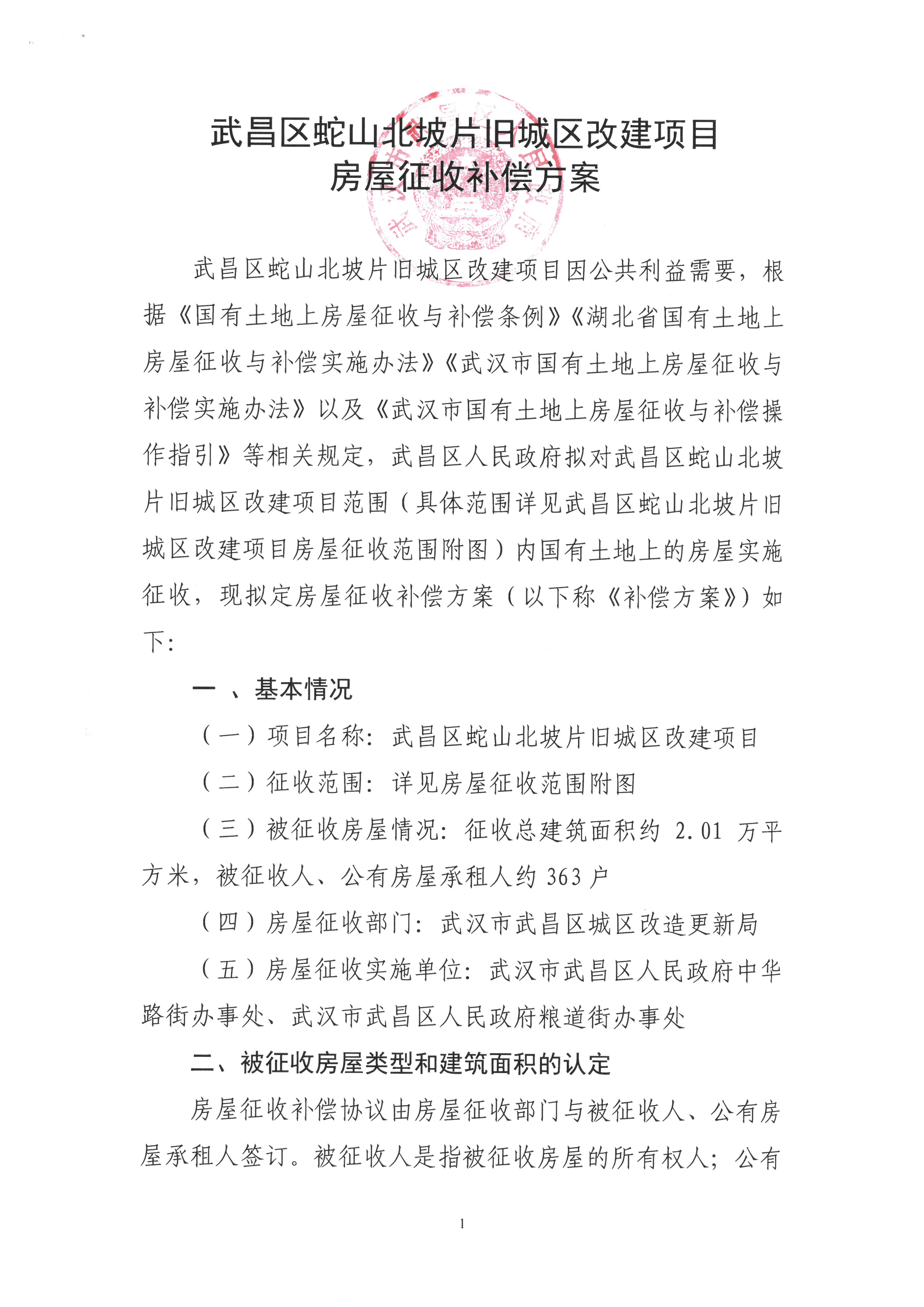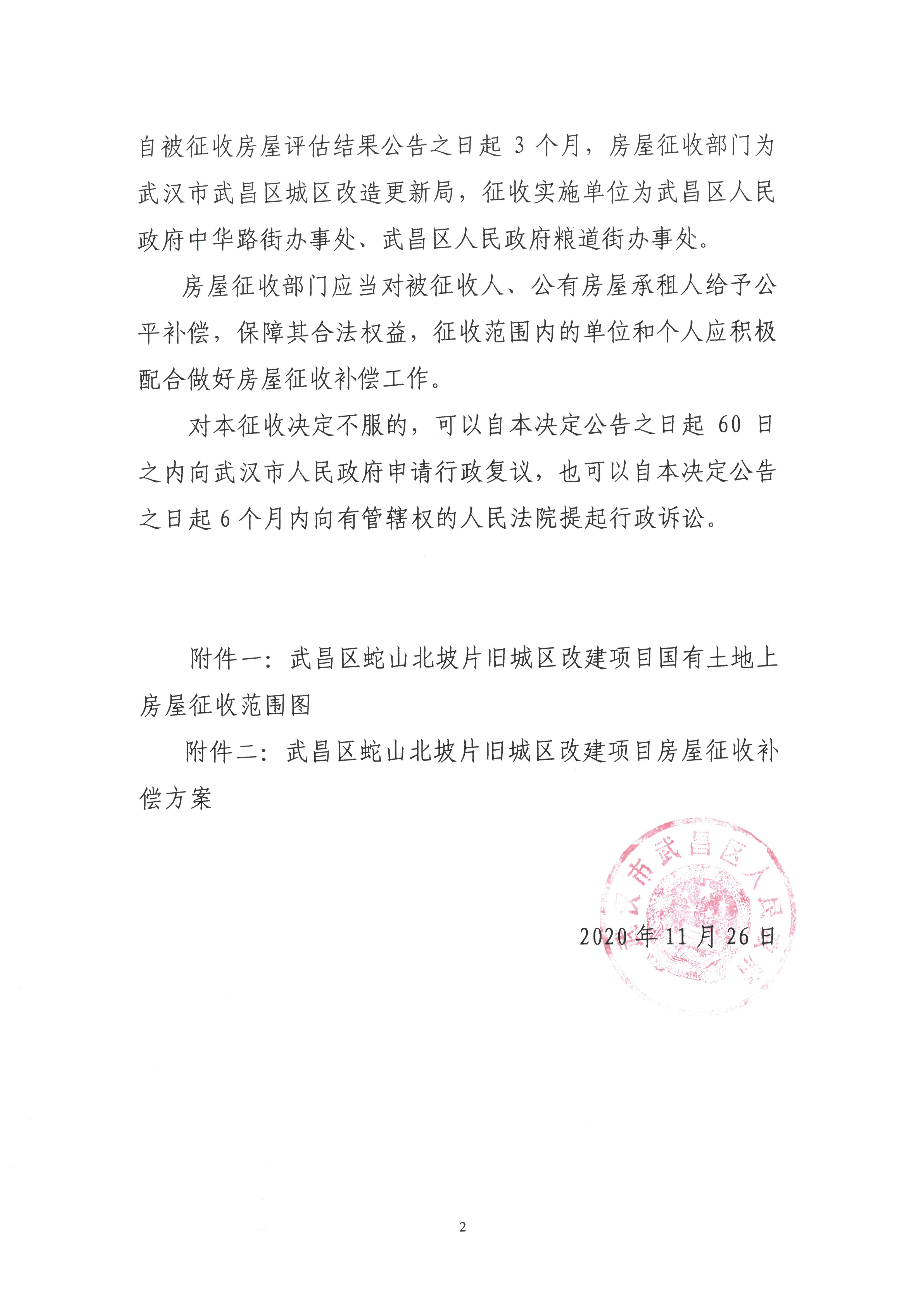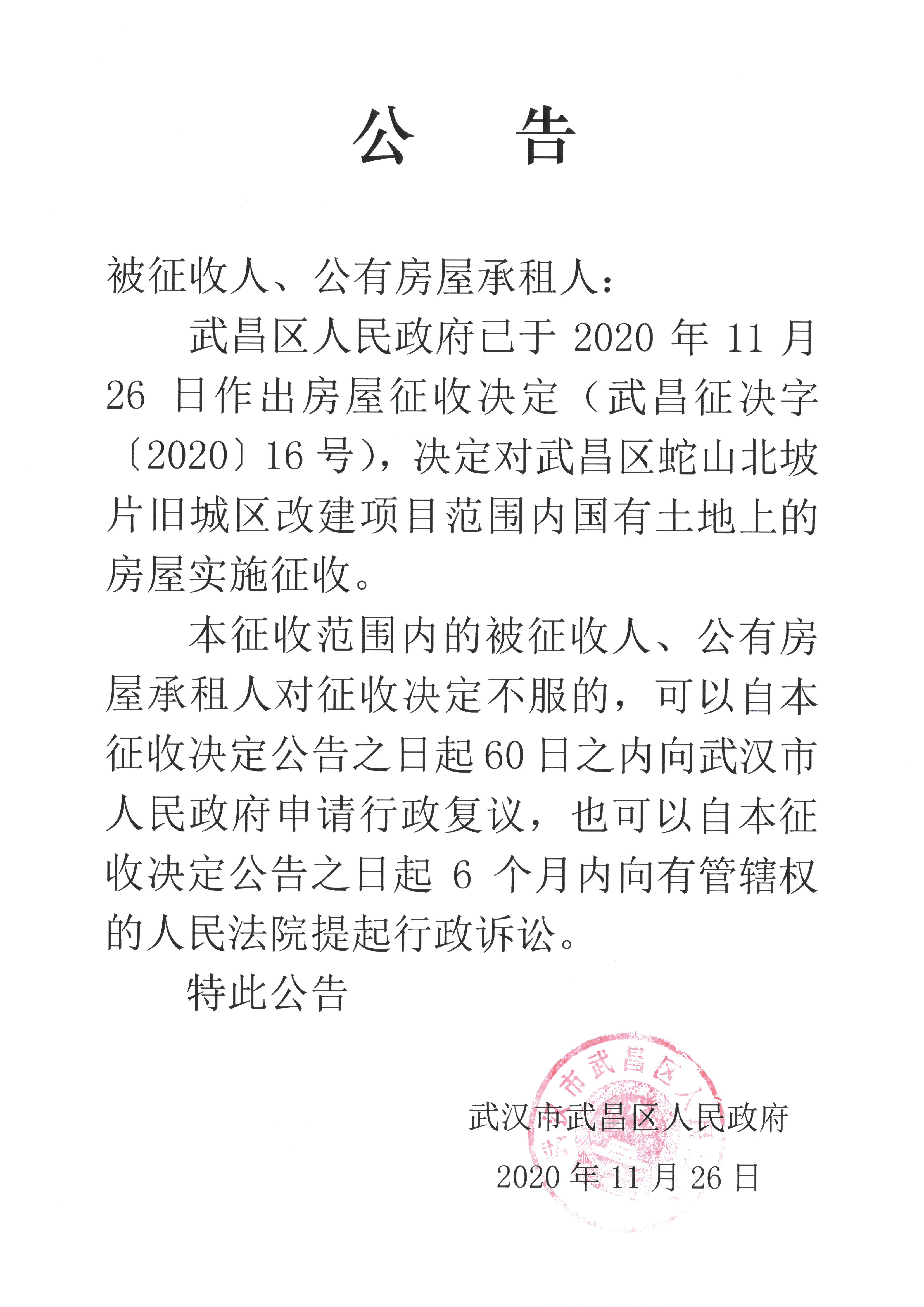 武昌区蛇山北坡片旧城区改建项目国有土地上房屋征收决定