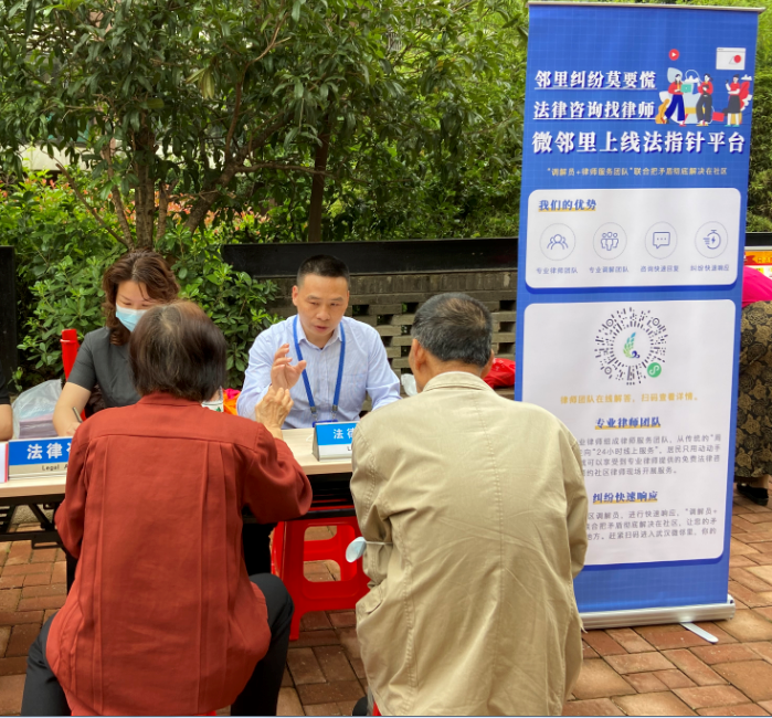 活动现场,工作人员通过设置展板、悬挂横幅、发放《民法典》宣传折页等方式对涉及人民群众切身利益的婚姻家庭、物业纠纷、老年人权益保护等方面进行重点宣传解读,并现场解答群众提出的法律问题。同时,滨湖社区法律顾问湖北今天律师事务所马红军律师还对武汉微邻里上线的“法指针”平台进行了现场的推广,马律师告诉前来咨询的居民群众,现在只需在家拿出手机,动动手指便可享受到专业律师提供的免费法律咨询服务。