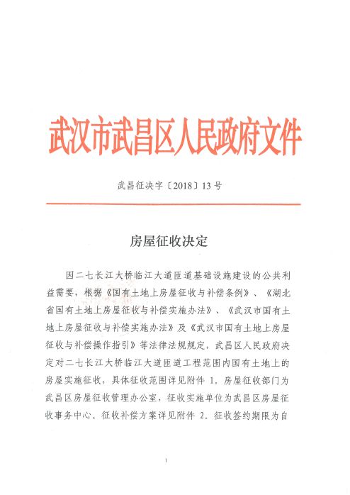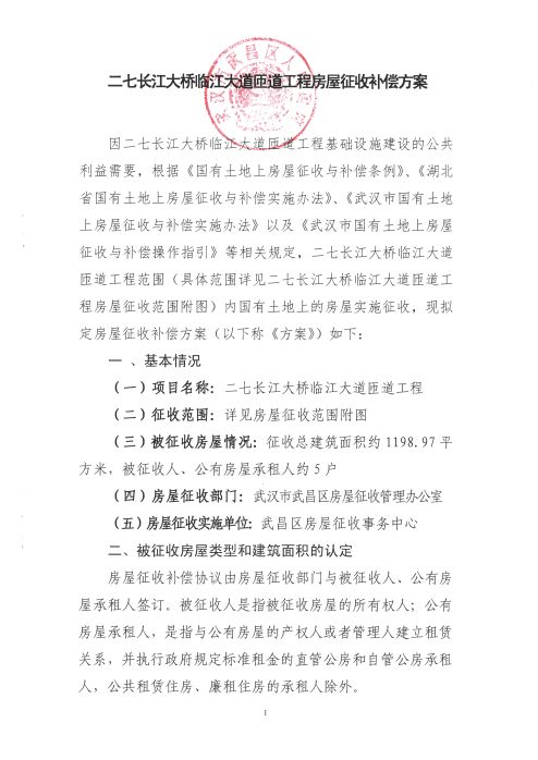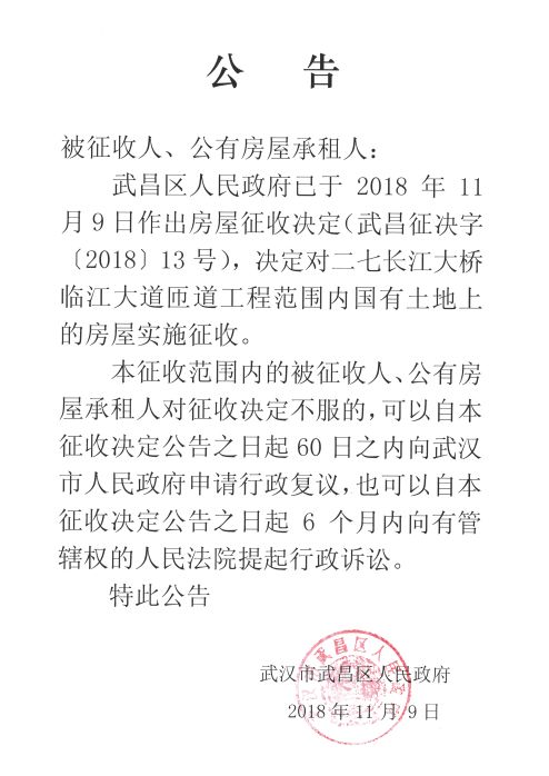 二七长江大桥临江大道匝道工程项目房屋征收决定