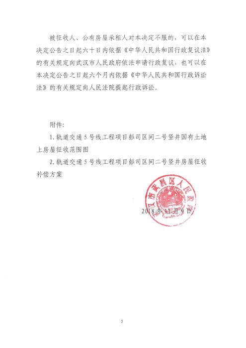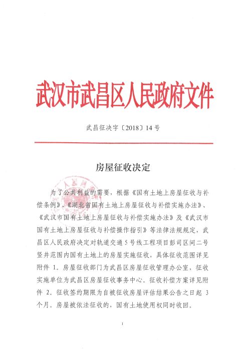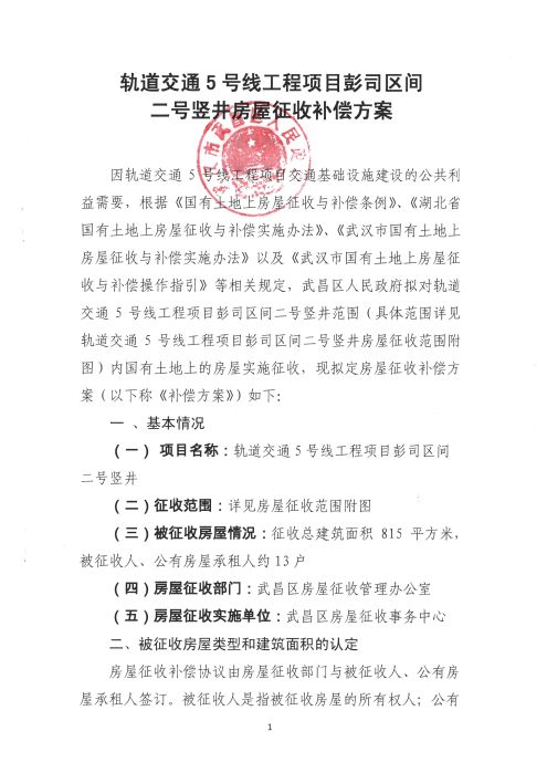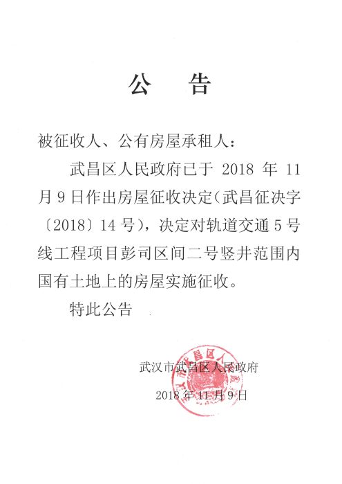房屋征收决定(轨道交通5号线工程项目彭司区间二号竖井)