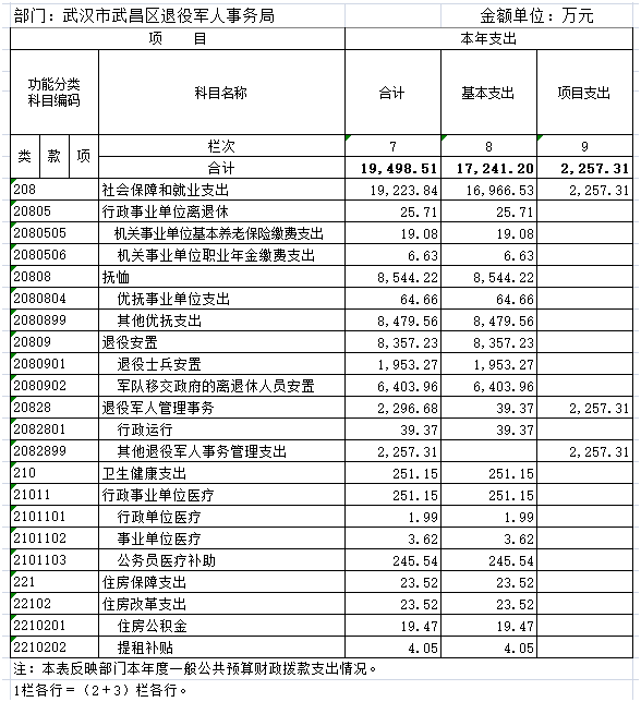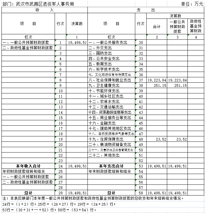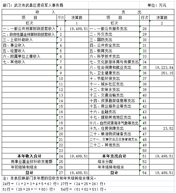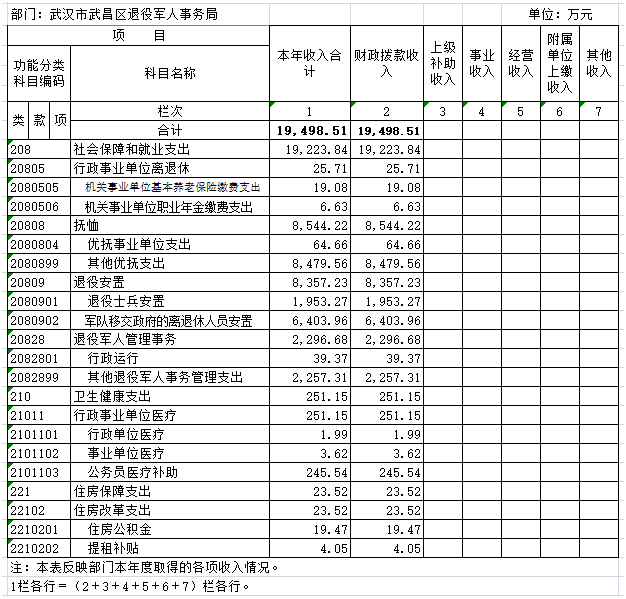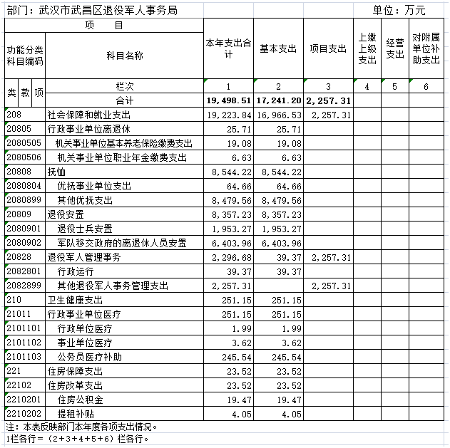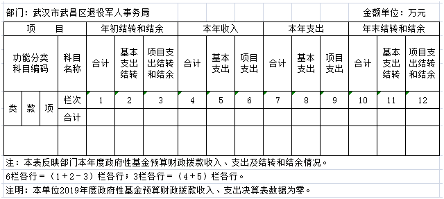 第二部分 武汉市武昌区退役军人事务局2019年度部门决算表