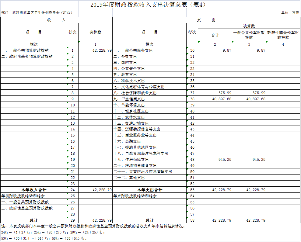 武汉市武昌区卫生计划委员会(汇总)2019年度部门决算表