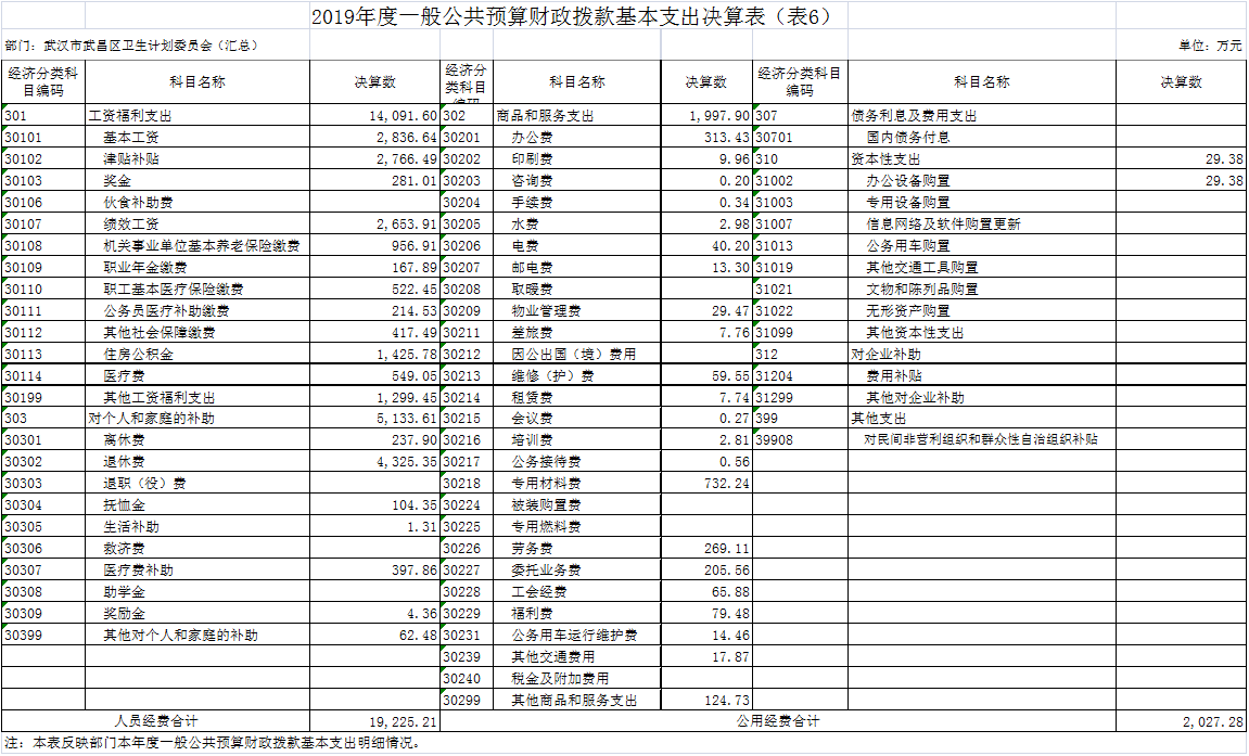 武汉市武昌区卫生计划委员会(汇总)2019年度
