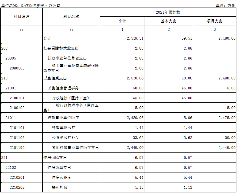 武汉市武昌区医疗保障管理委员会办公室2021年单位预算表