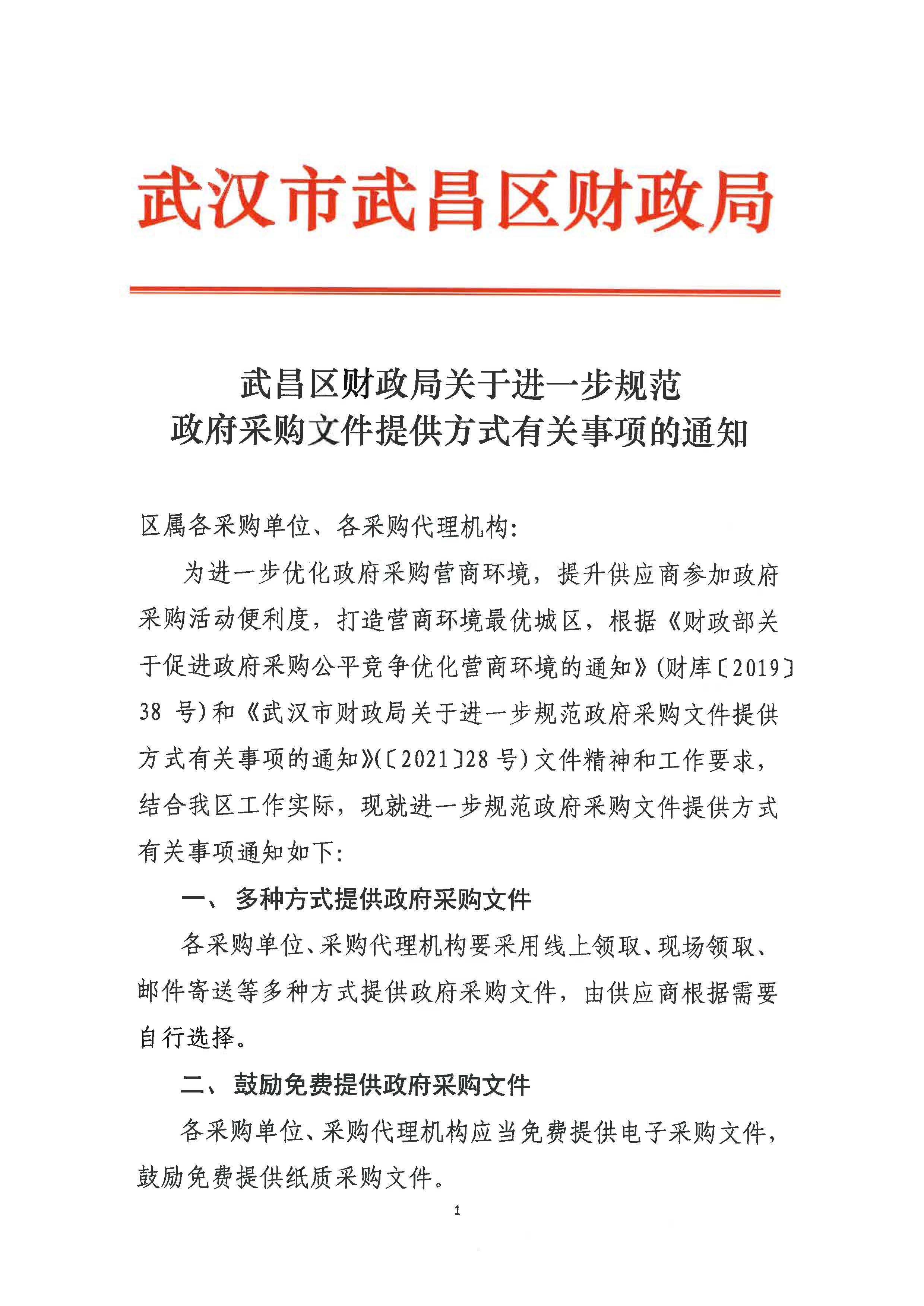 武昌区财政局关于进一步规范政府采购文件提供方式有关事项的通知