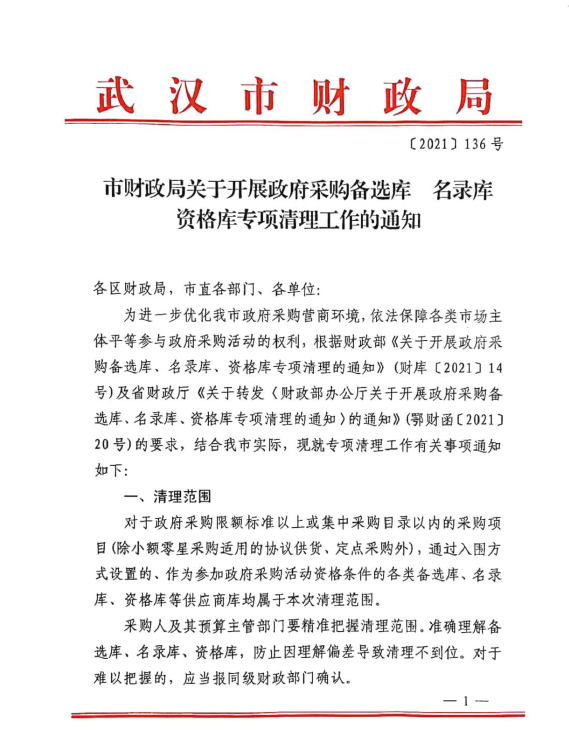 市财政局关于开展政府采购备选库、名录库、资格库专项清理工作的通知
