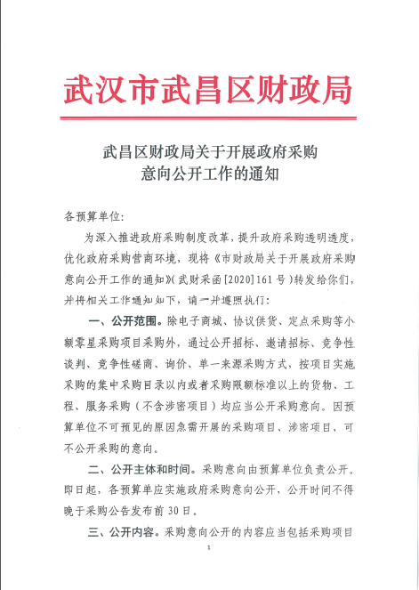 武昌区财政局关于开展政府采购意向公开工作的通知