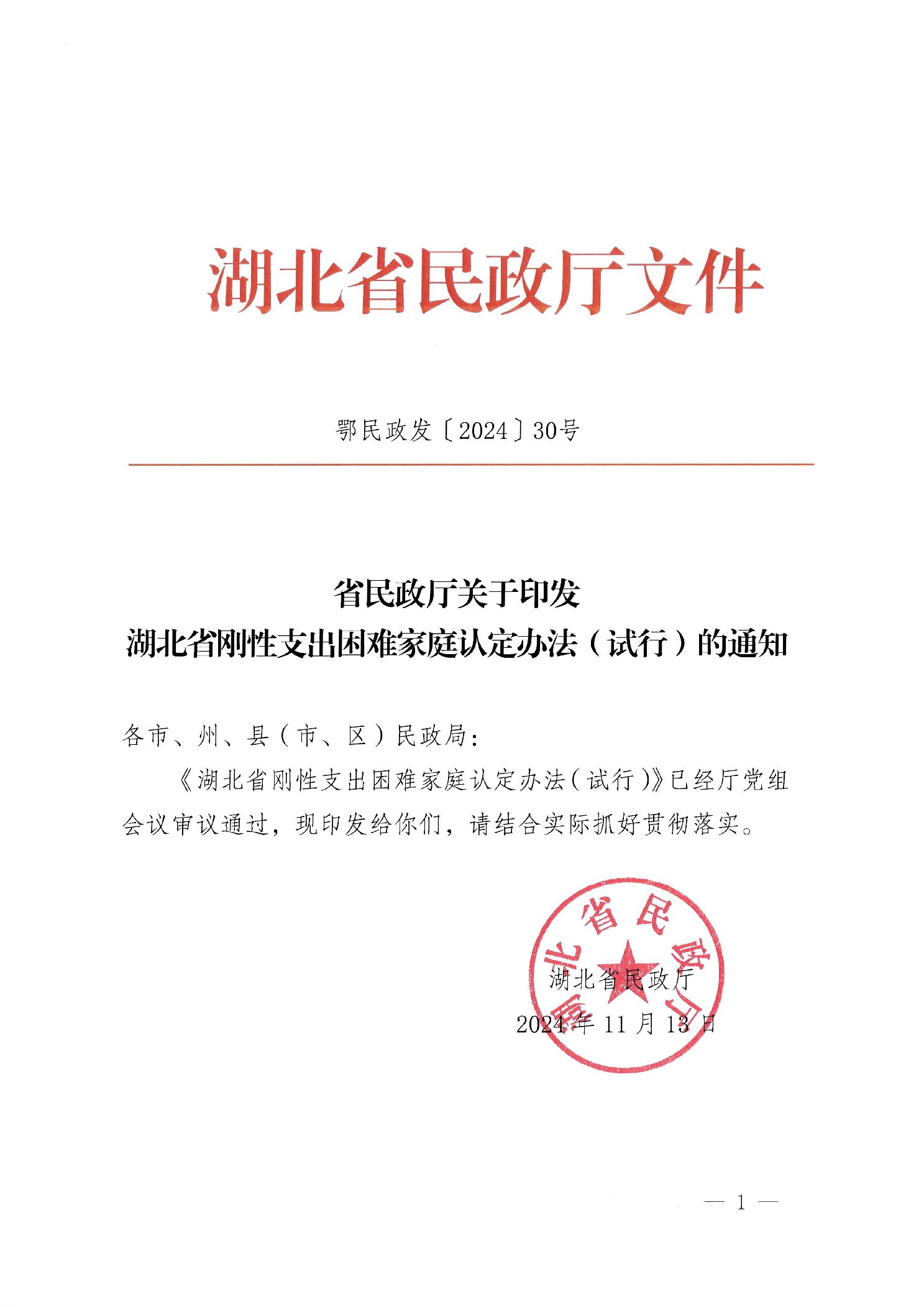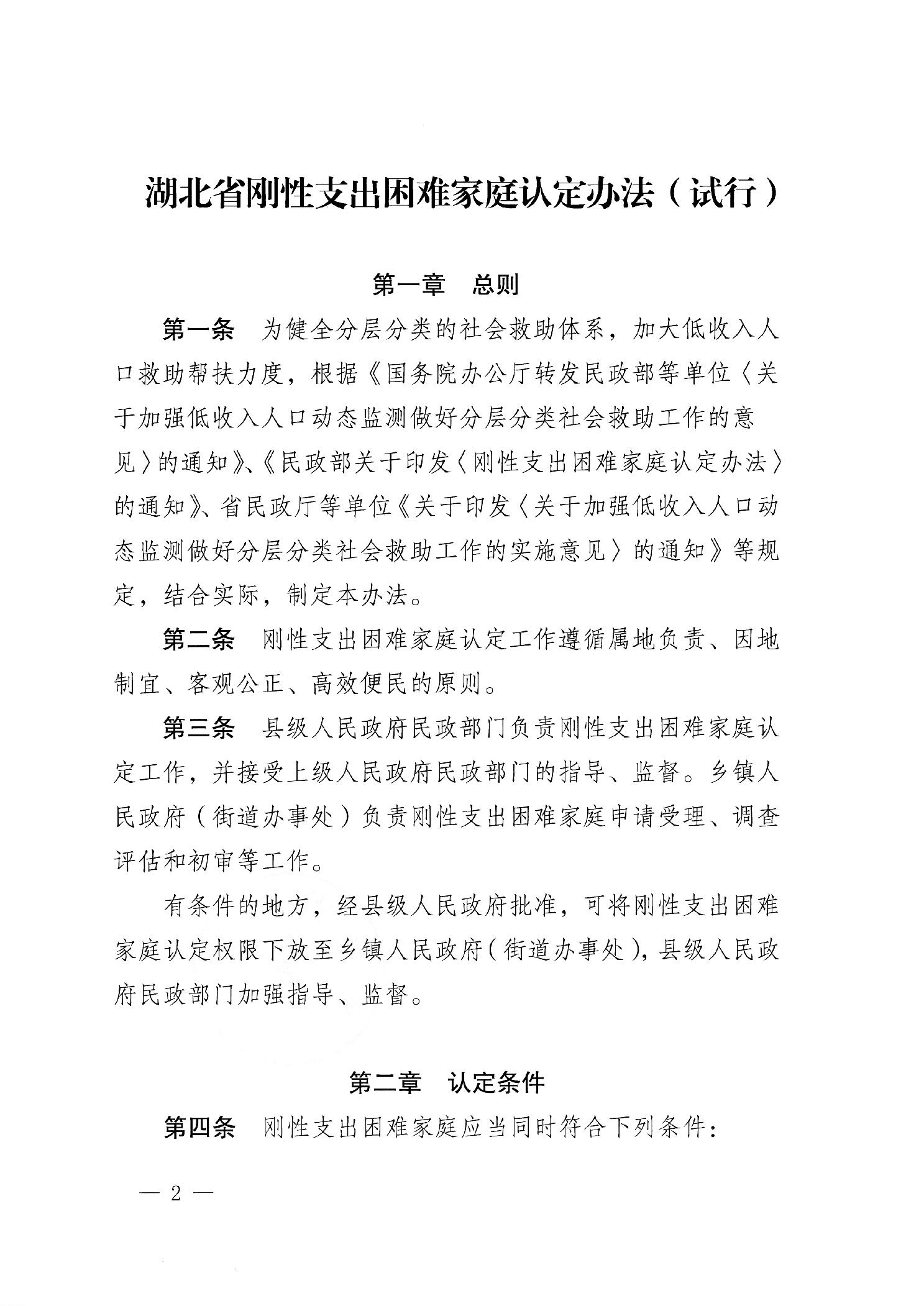 省民政厅关于印发《湖北省刚性支出困难家庭认定办法(试行)》的通知