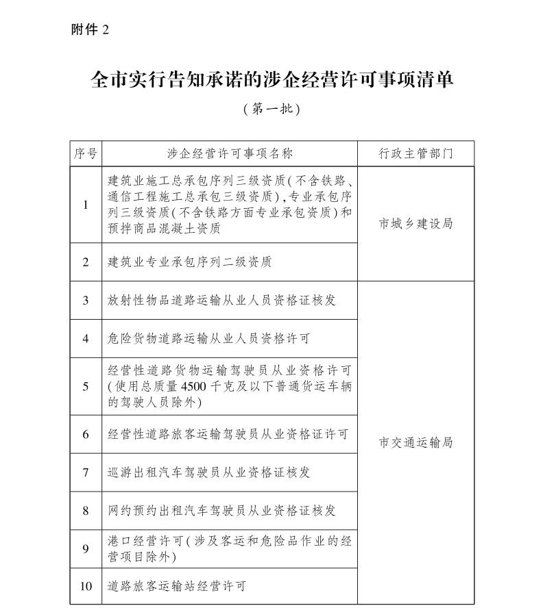 2.全市实行告知承诺的涉企经营许可事项清单(第一批)